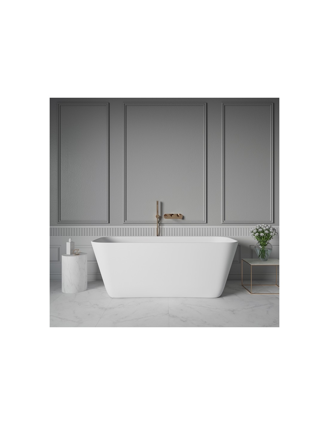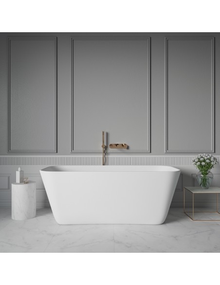MILANO fritstående badekar 169 x 74 cm solid surface - Satineret mat hvid