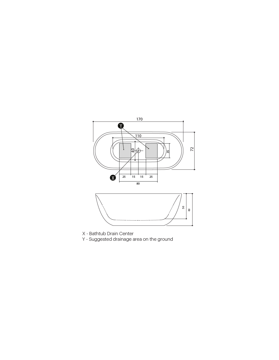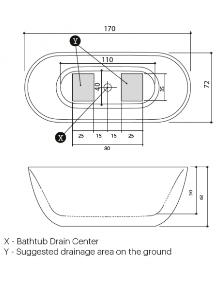 Fritstående badekar fra Spanske ICÓNICO, udført i et design fremstillet i det solide materiale "Solid Surface", der ikke alene giver badeværelset et stilrent design, men samtidig er lækkert at røre ved. Badekaret måler 170 x 72 cm i bredde og dybde og 63 cm i højden (ydermål). Leveres med bundventil. Dertil justérbare fødder, således badekaret kan sættes i korrekt niveau.