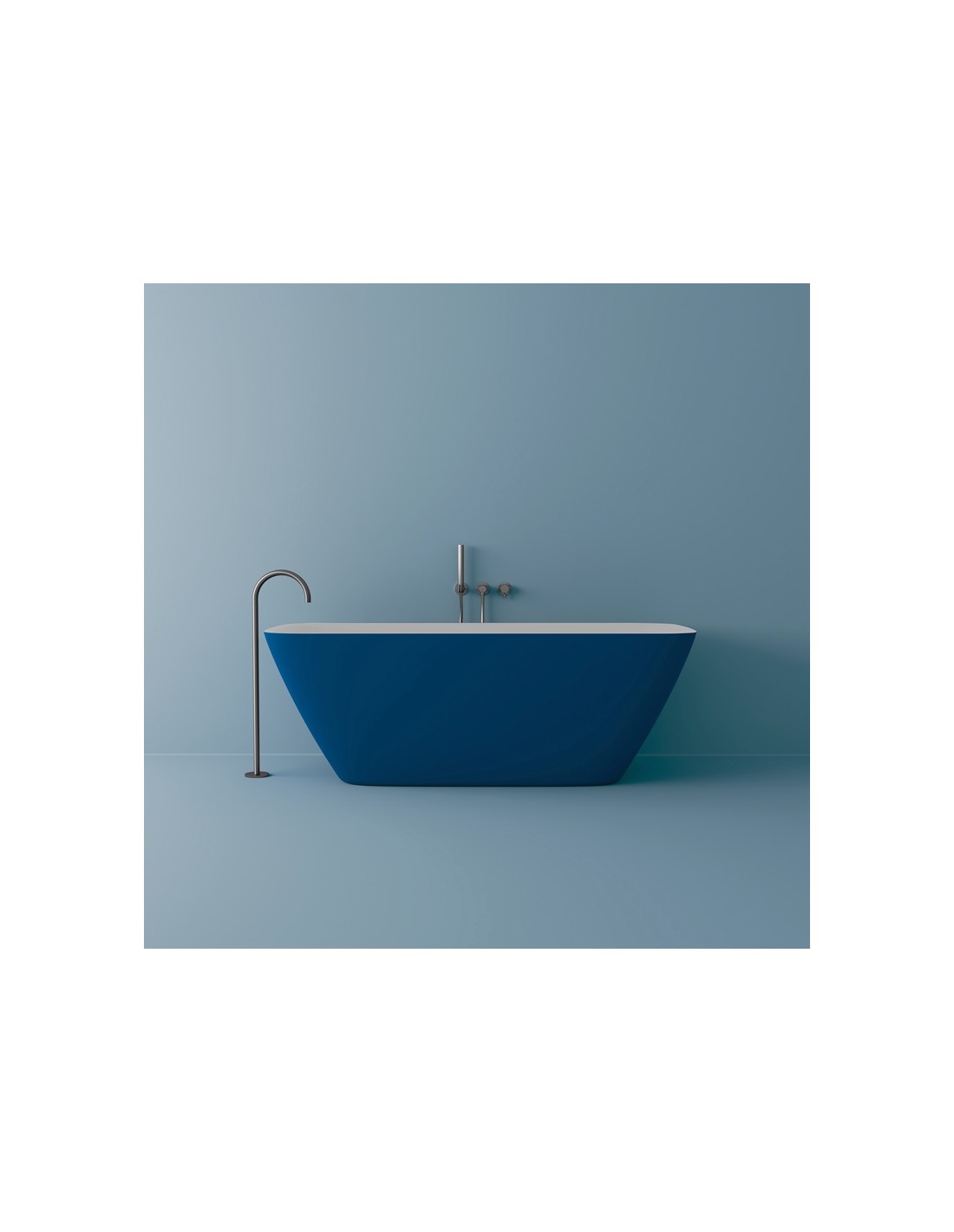 B5 fritstående badekar 174 x 77 cm solid surface - Mat hvid/Blå