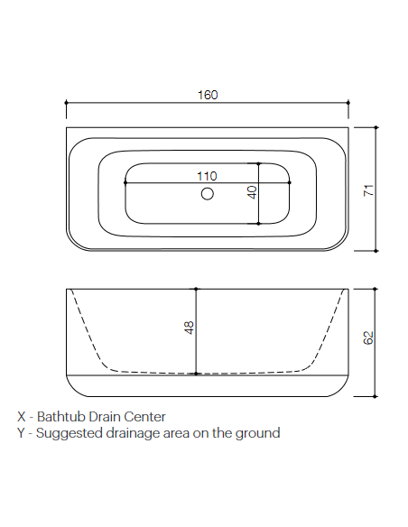 Fritstående badekar fra Spanske ICÓNICO, udført i et design fremstillet i det solide materiale "Solid Surface", der ikke alene giver badeværelset et stilrent design, men samtidig er lækkert at røre ved. Badekaret måler 160 x 71 cm i bredde og dybde og 62 cm i højden (ydermål). Leveres med bundventil. Dertil justérbare fødder, således badekaret kan sættes i korrekt niveau.