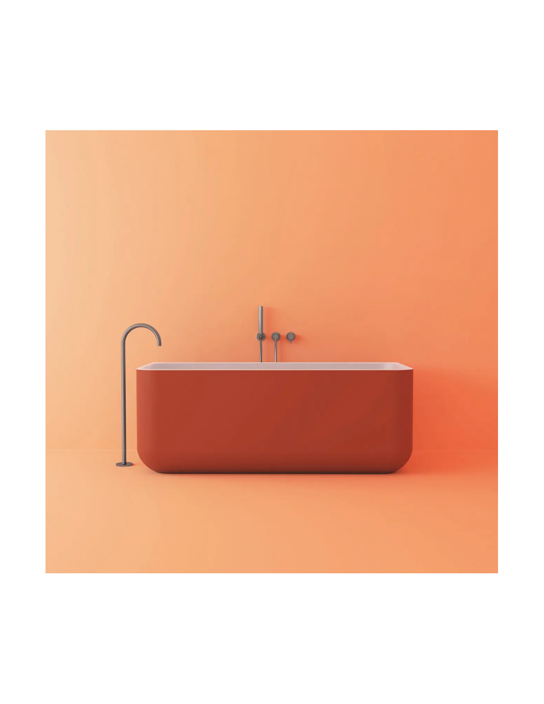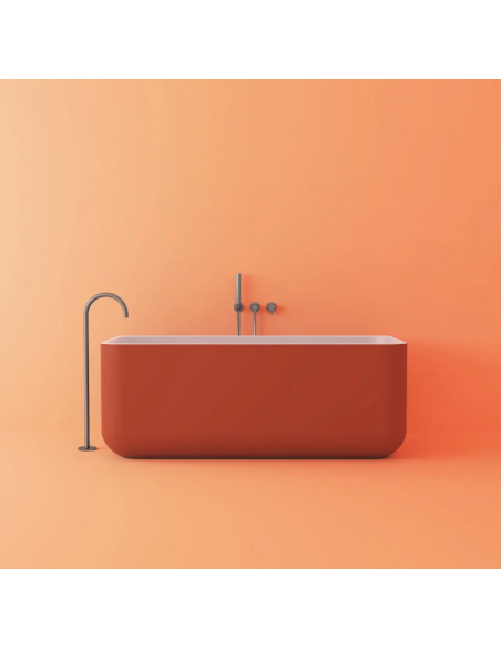 B7 fritstående badekar 160 x 71 cm solid surface - Mat hvid/Rødorange