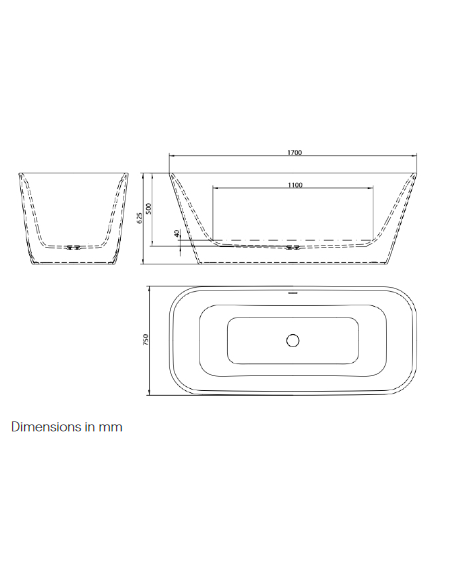 Fritstående badekar fra Spanske ICÓNICO, udført i et design fremstillet i det solide materiale "Solid Surface", der ikke alene giver badeværelset et stilrent design, men samtidig er lækkert at røre ved. Badekaret måler 170 x 75 cm i bredde og dybde og 62,5 cm i højden (ydermål). Leveres med bundventil. Dertil justérbare fødder, således badekaret kan sættes i korrekt niveau.