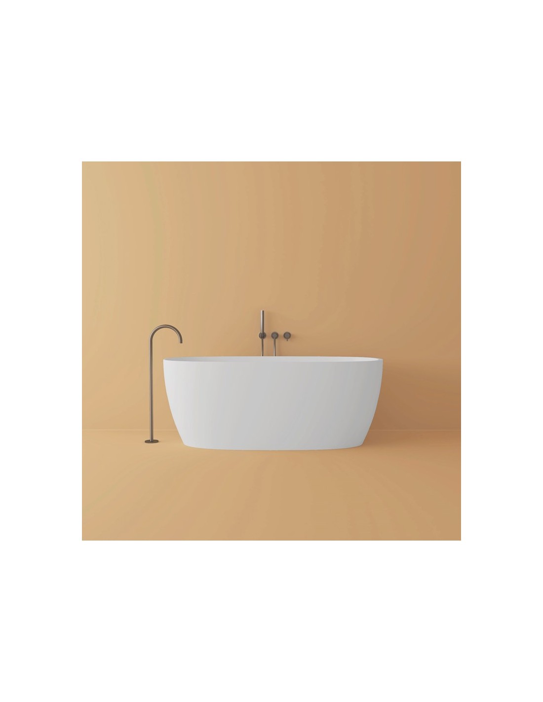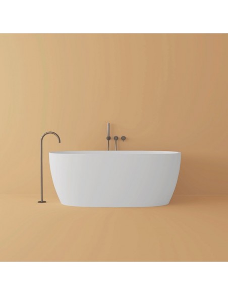 Fritstående badekar fra Spanske ICÓNICO, udført i et design fremstillet i det solide materiale mineral komposit. Badekaret måler 160 x 70 cm i bredde og dybde og 61,5 cm i højden (ydermål). Leveres med bundventil og overløb. Dertil justérbare fødder, således badekaret kan sættes i korrekt niveau.