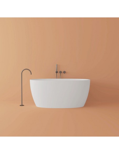 Fritstående badekar fra Spanske ICÓNICO, udført i et design fremstillet i det solide materiale mineral komposit. Badekaret måler 140 x 70 cm i bredde og dybde og 61,5 cm i højden (ydermål). Leveres med bundventil og overløb. Dertil justérbare fødder, således badekaret kan sættes i korrekt niveau.