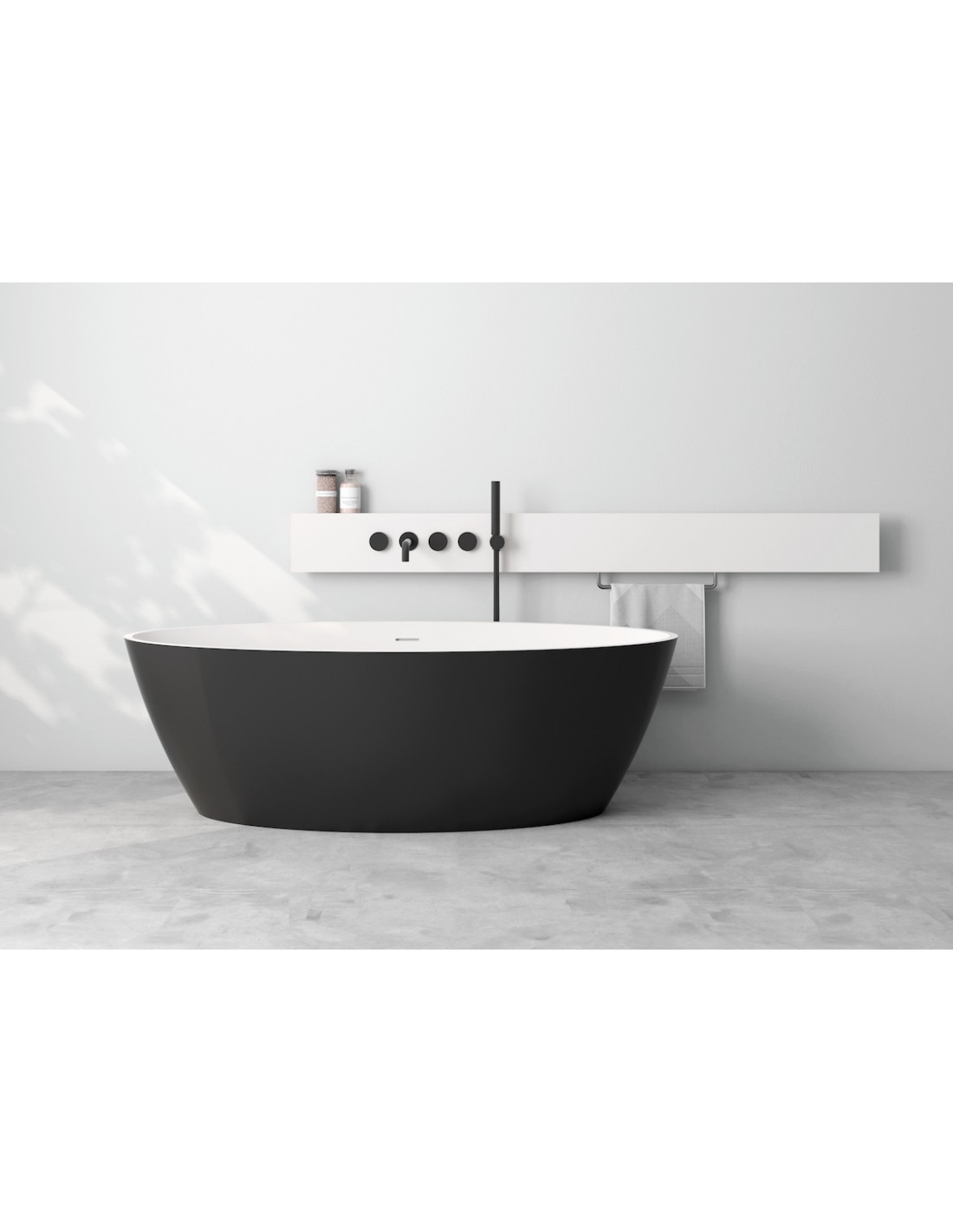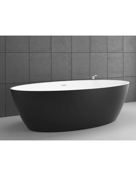 SPACE fritstående badekar 170 x 80 cm solid surface - Mat hvid/Grafitgrå