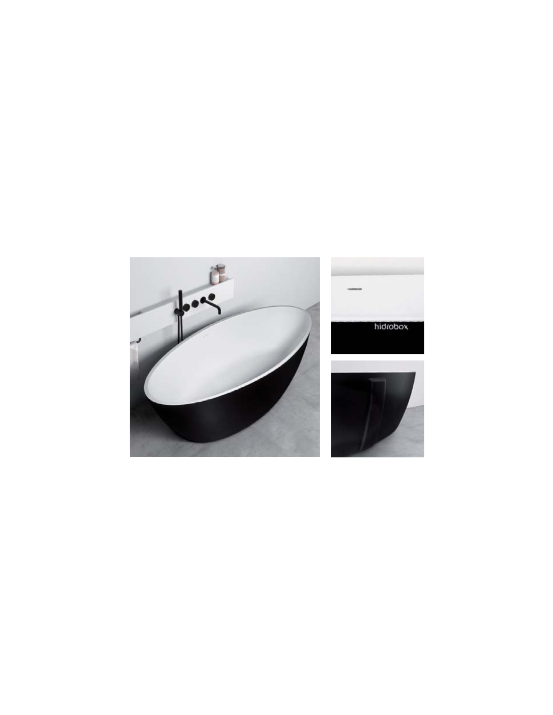 Fritstående badekar fra Spanske Hidrobox, udført i et design fremstillet i det solide materiale "Solid Surface", der ikke alene giver badeværelset et stilrent design, men samtidig er lækkert at røre ved. Badekaret måler 170 x 80 cm i bredde og dybde og 53,5 cm i højden (ydermål). Leveres med pop-up bundventil (i krom) og afløb. Dette badekar er med overløbshul.