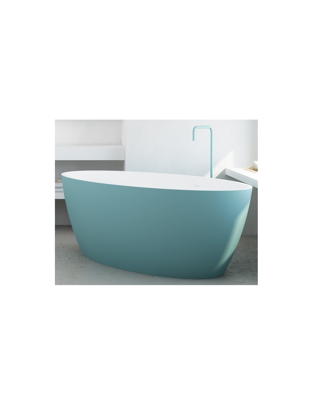 SPACE fritstående badekar 170 x 80 cm solid surface - Mat hvid/Havblå
