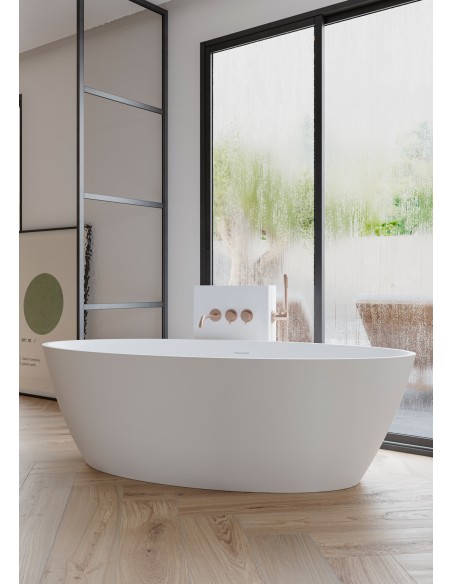 SPACE fritstående badekar 180 x 85 cm solid surface - Mat hvid