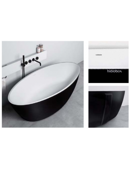 Fritstående badekar fra Spanske Hidrobox, udført i et design fremstillet i det solide materiale "Solid Surface", der ikke alene giver badeværelset et stilrent design, men samtidig er lækkert at røre ved. Badekaret måler 180 x 85 cm i bredde og dybde og 53,5 cm i højden (ydermål). Leveres med pop-up bundventil (i krom) og afløb. Dette badekar er med overløbshul.