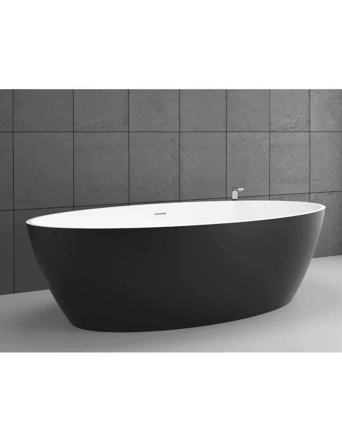 SPACE fritstående badekar 180 x 85 cm solid surface - Mat hvid/Grafitgrå
