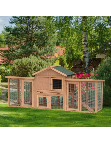 Hønsehus i fyrretræ 204 x 85 x 93 cm - Natur/Grøn