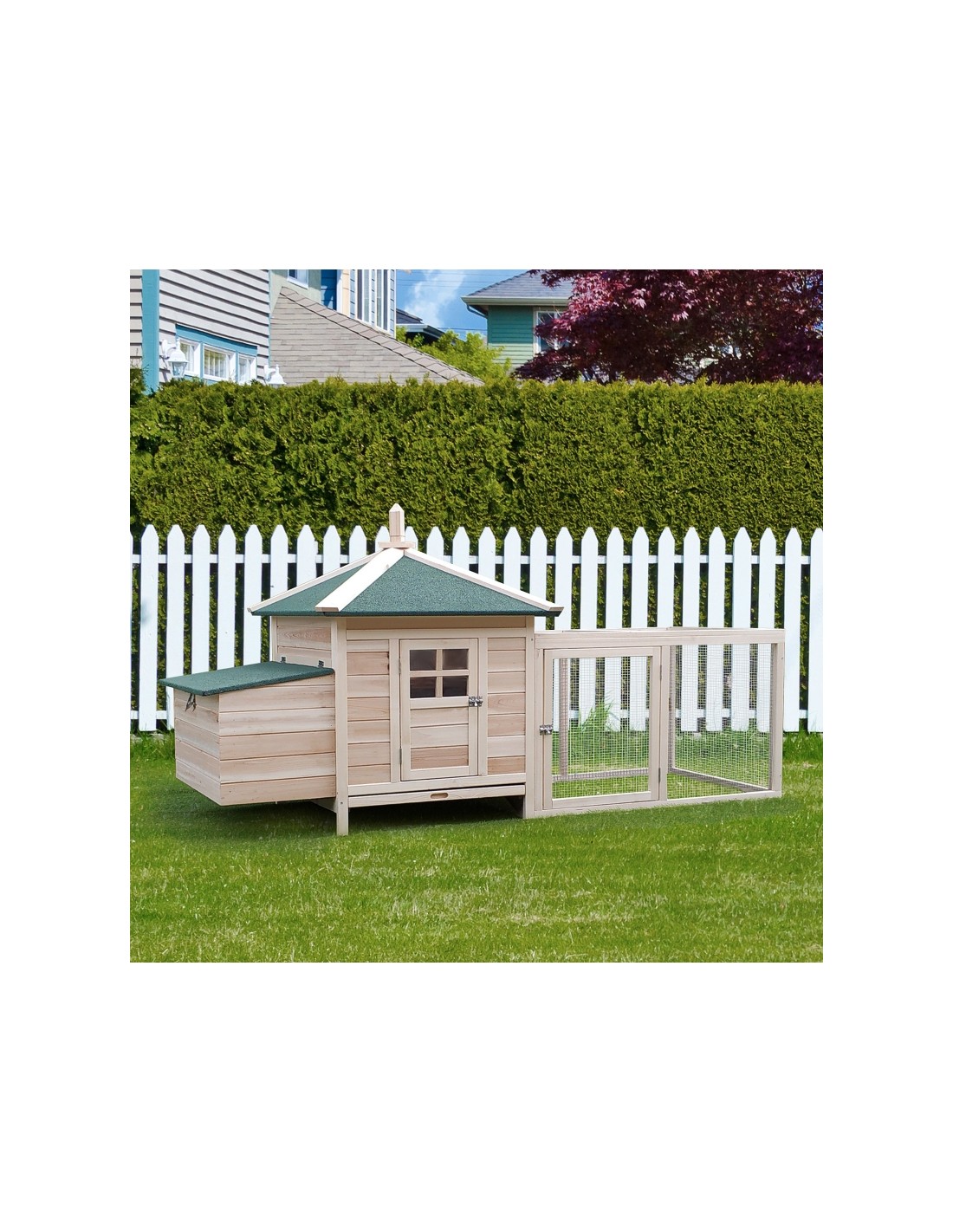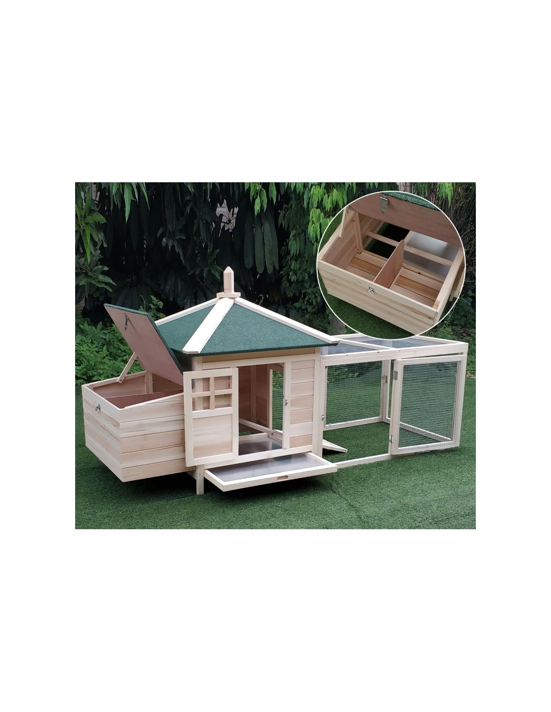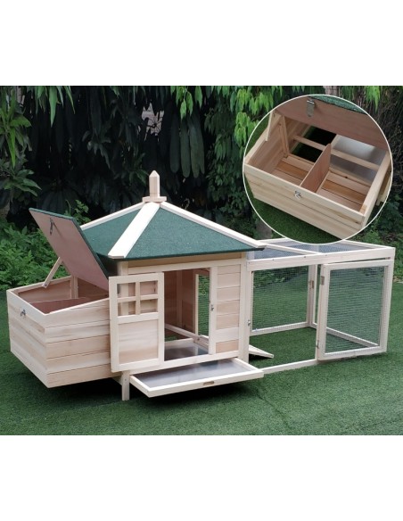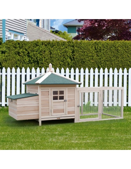 Hønsehus i fyrretræ 196 x 76 x 97 cm - Natur/Grøn