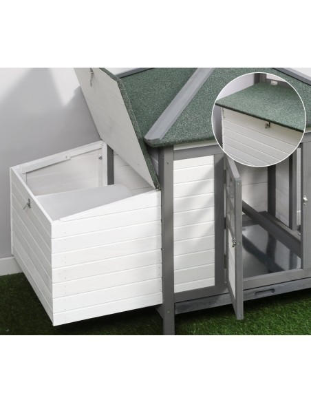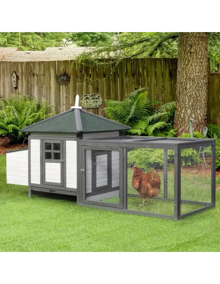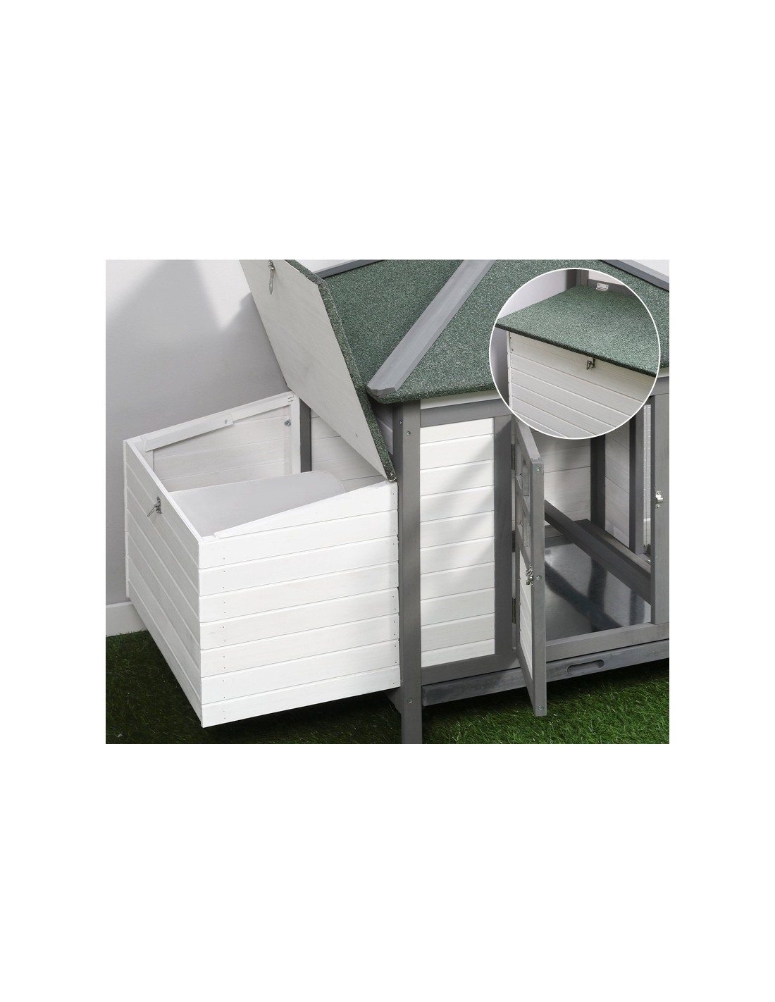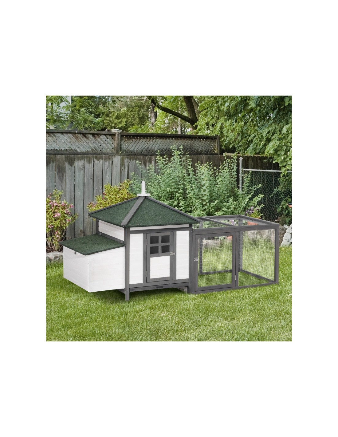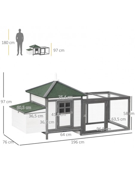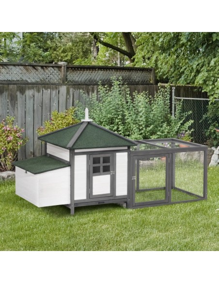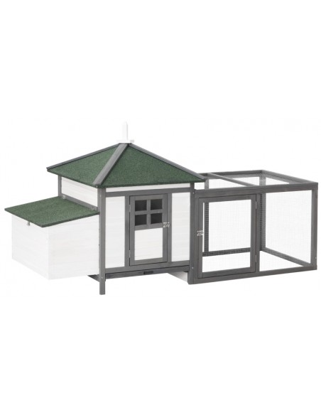 Hønsehus i fyrretræ 196 x 76 x 97 cm - Hvid/Grå/Grøn