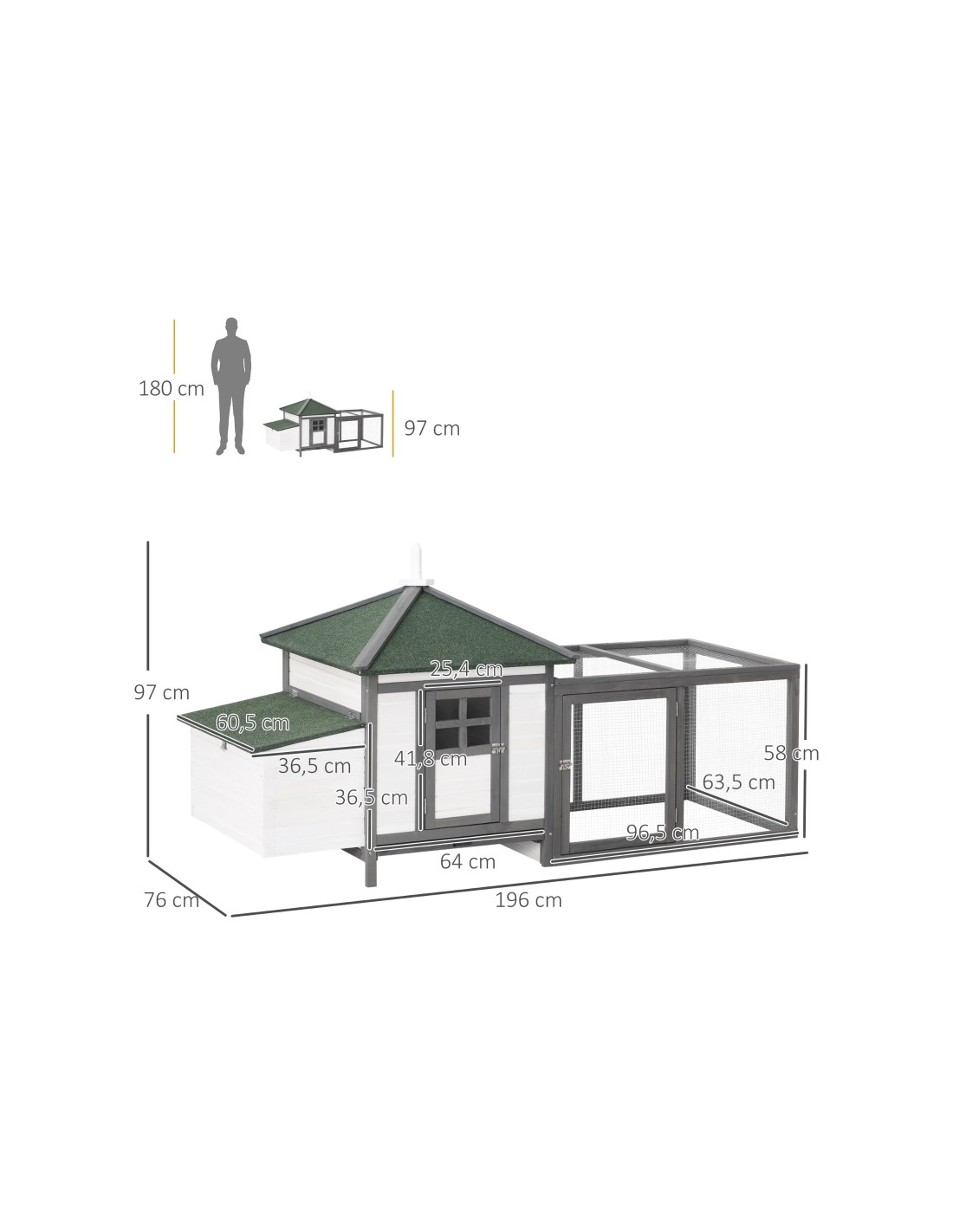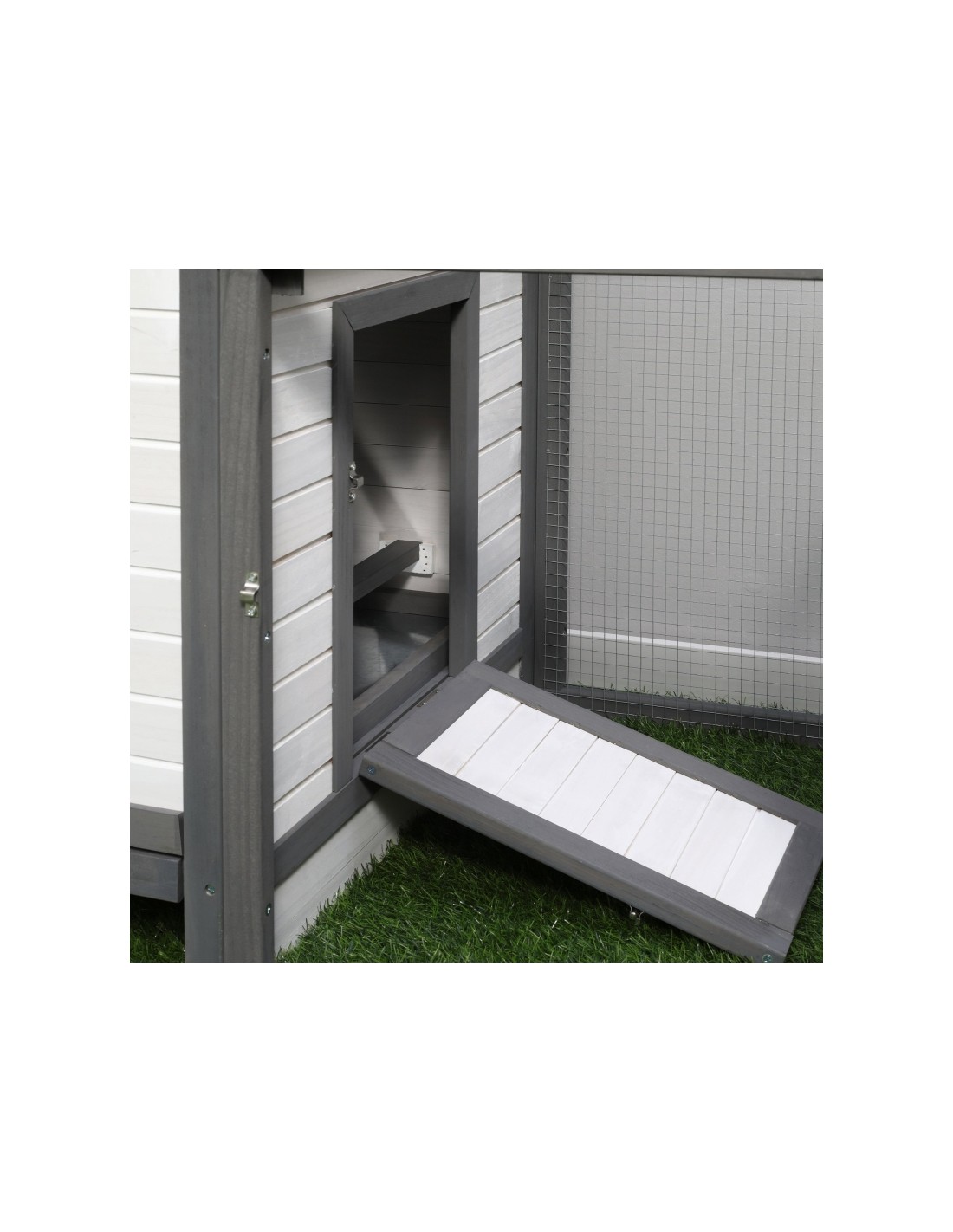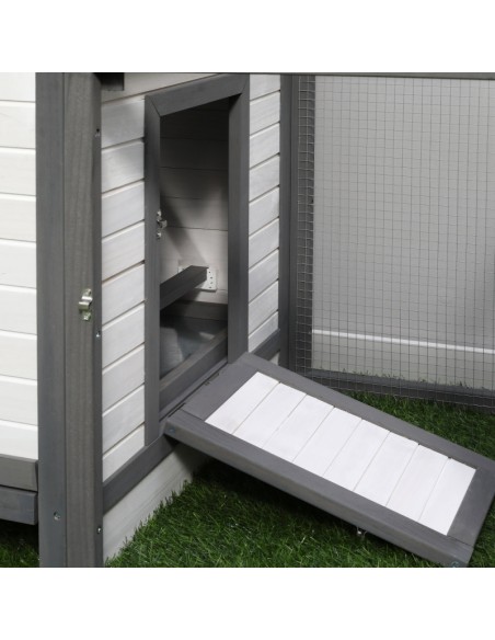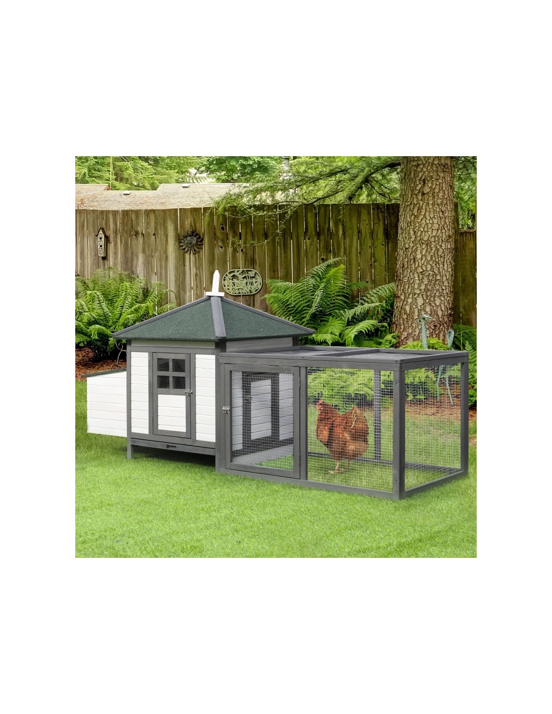 Hønsehus i fyrretræ 196 x 76 x 97 cm - Hvid/Grå/Grøn