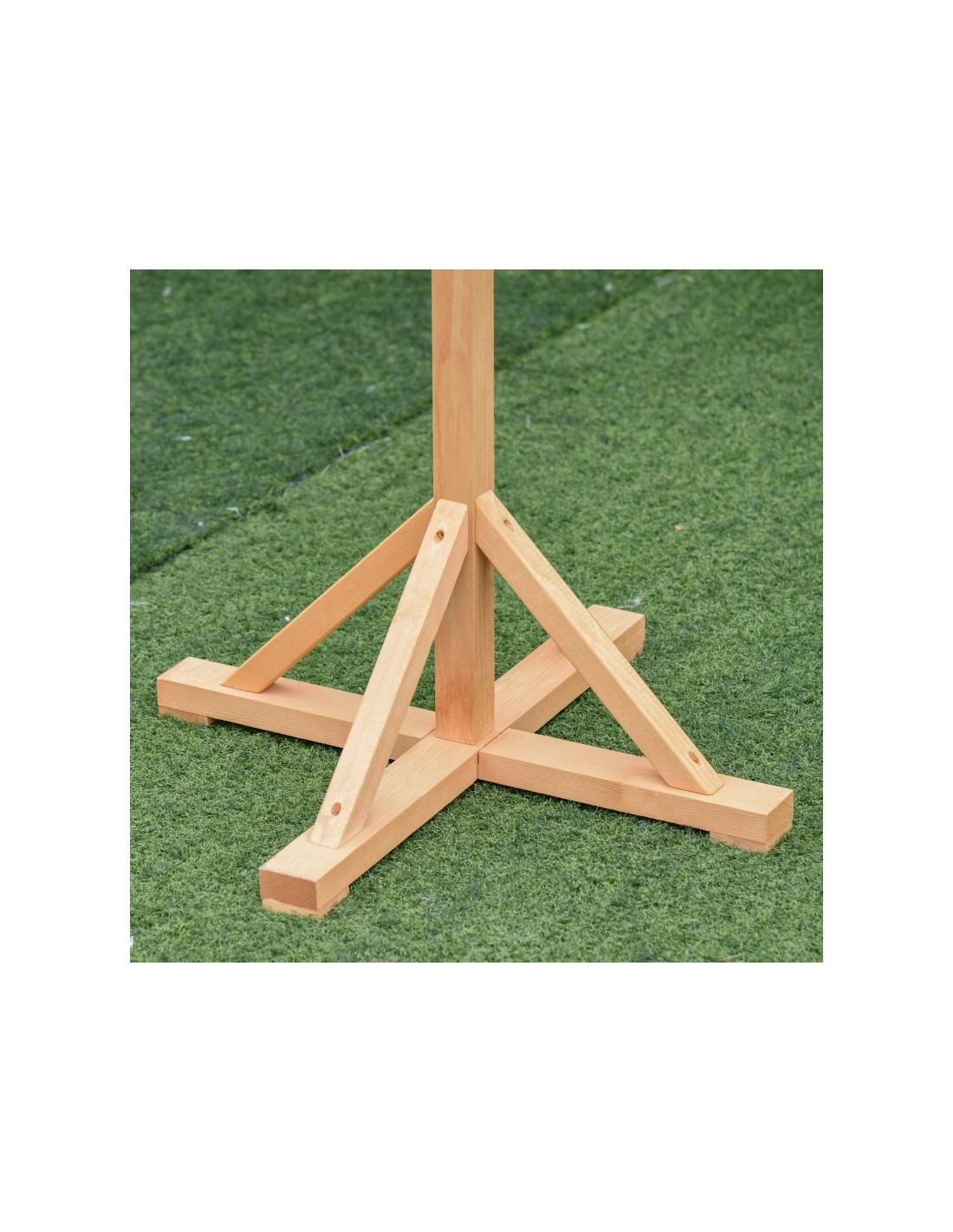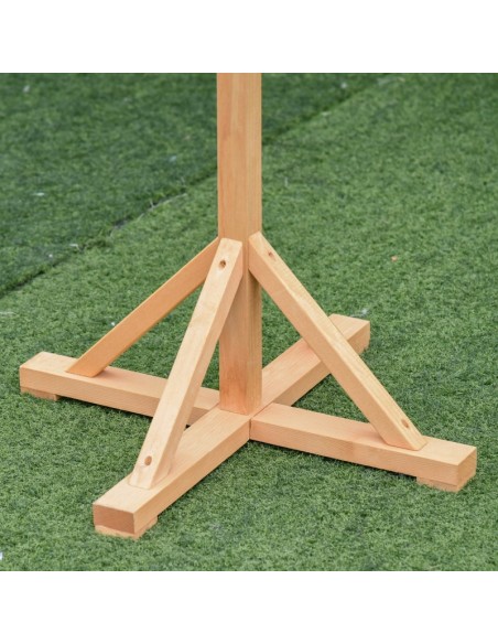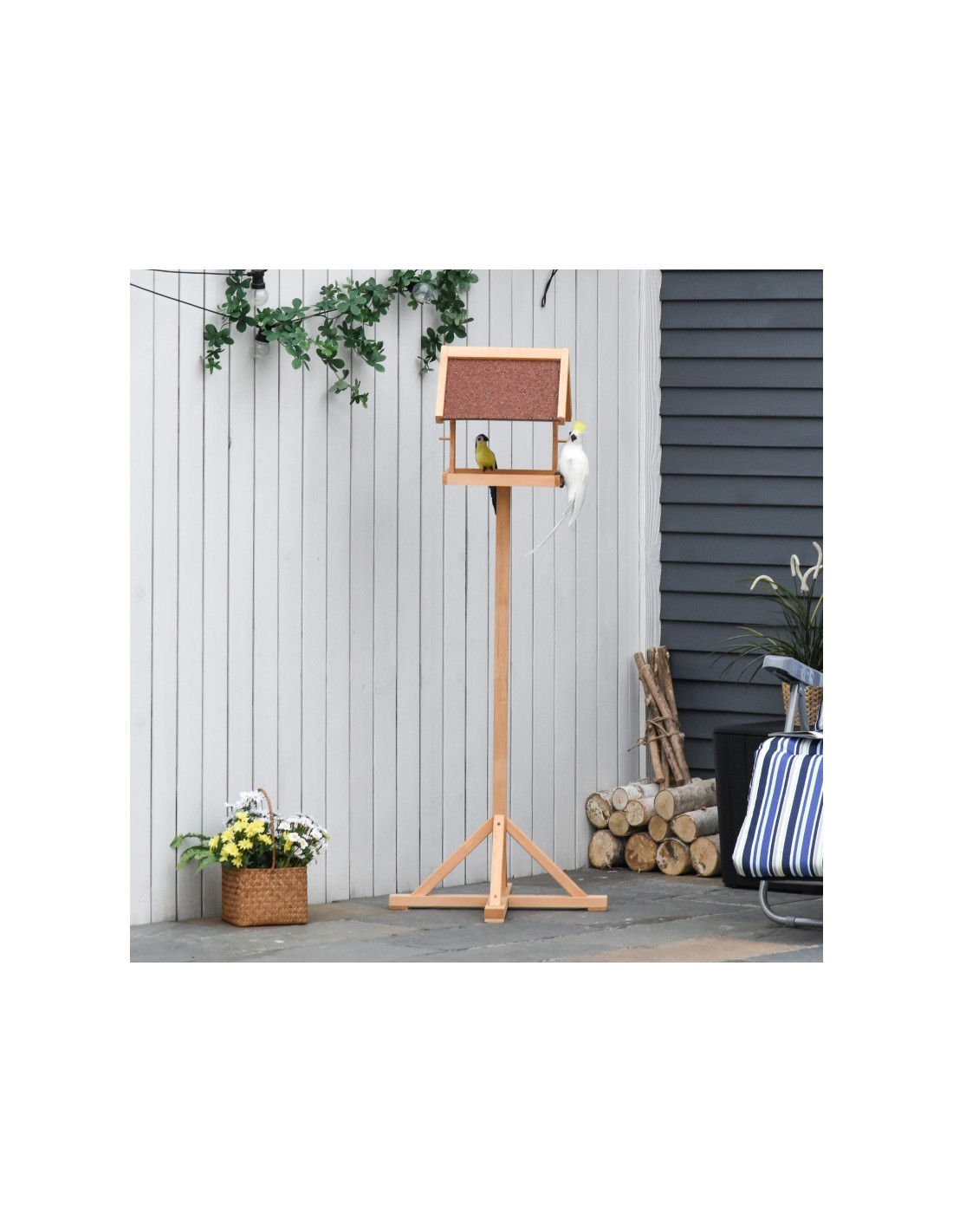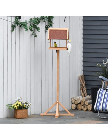 Fuglehus udført i et design af fyrretræ. Fuglehuset måler 144 cm i højden og 34 x 32 cm i bredde og dybde.