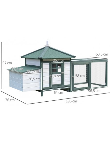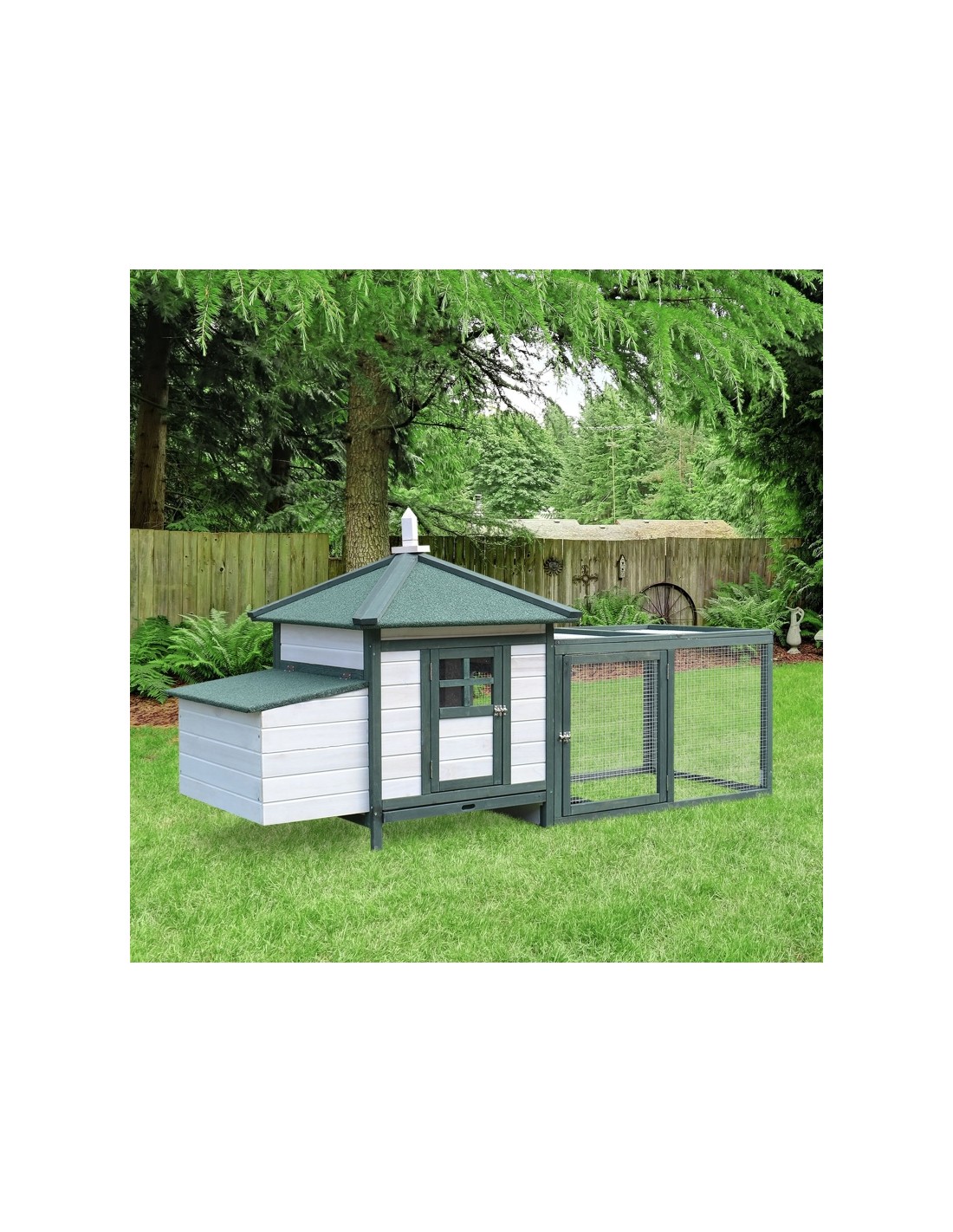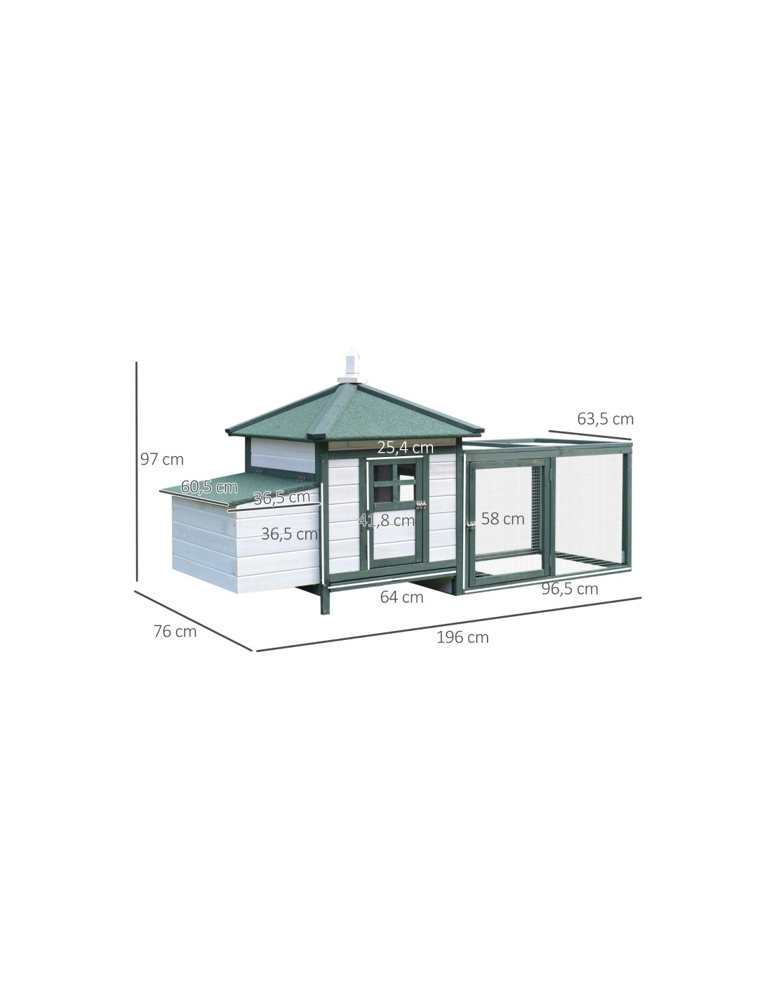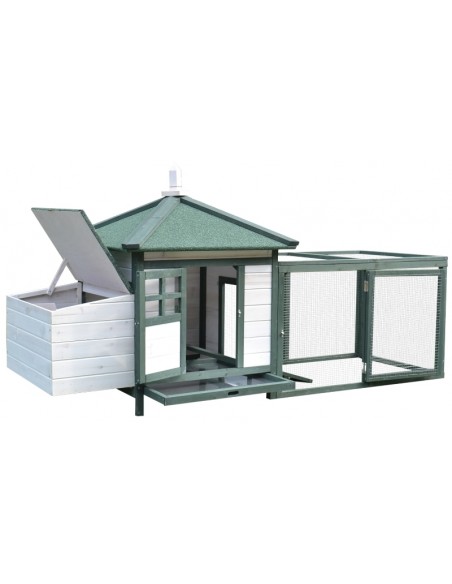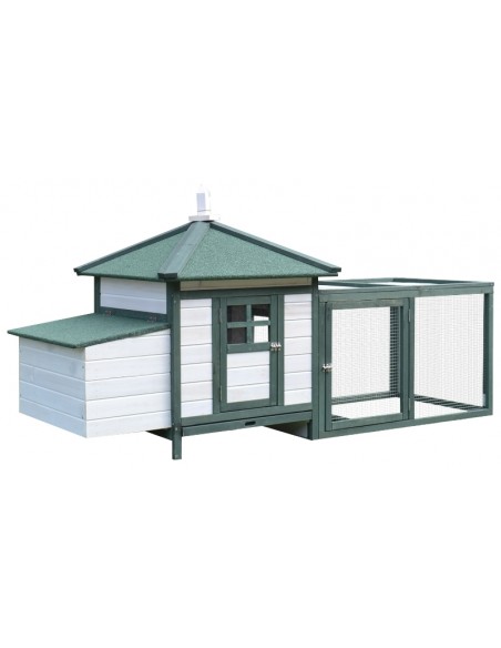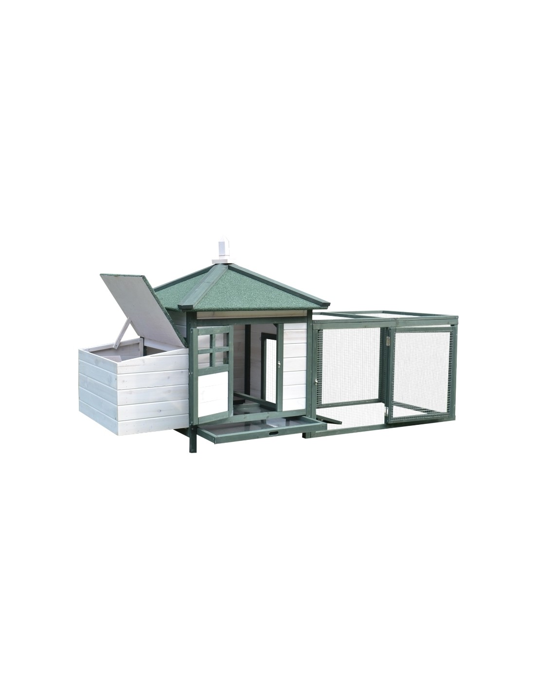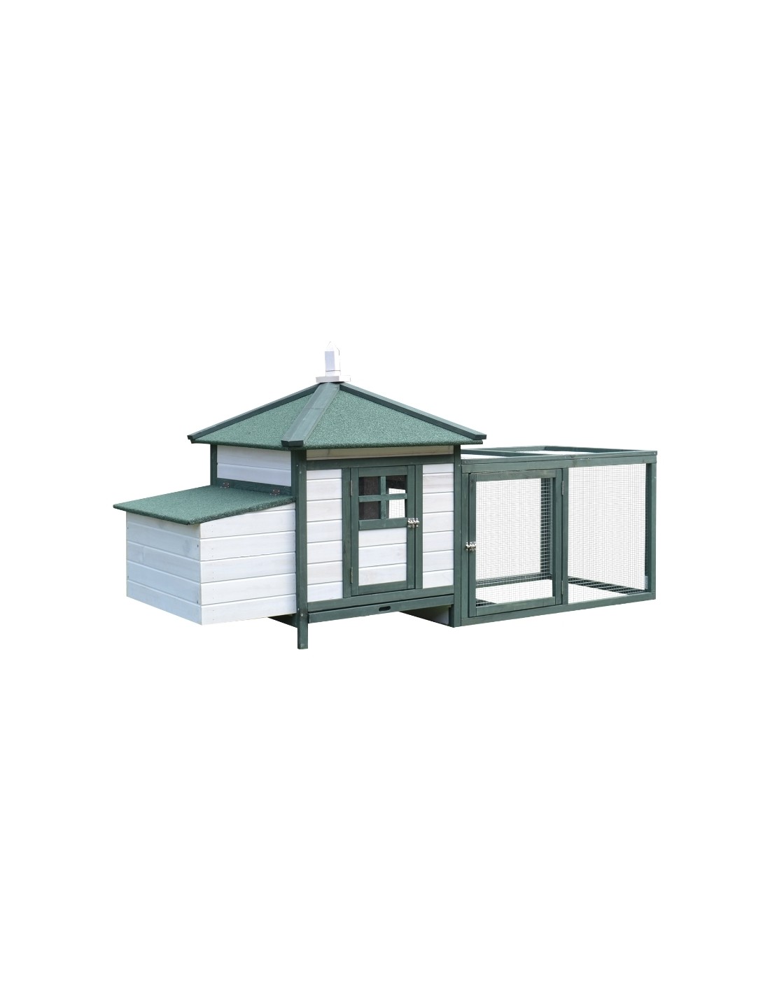 Hønsehus i fyrretræ 196 x 76 x 97 cm - Hvid/Grøn