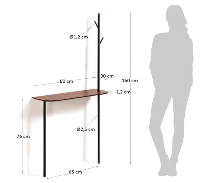 Garderobe udført i et moderne design fra LaForma. Garderoben er fremstillet i valnøddefolieret mdf og sortlakeret metal. Garderoben måler 160 cm i højden og 80 cm i bredden.