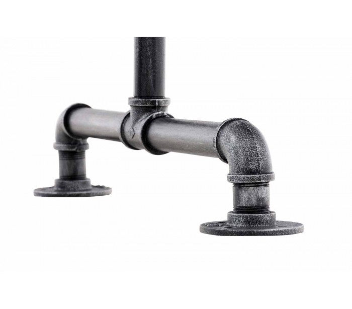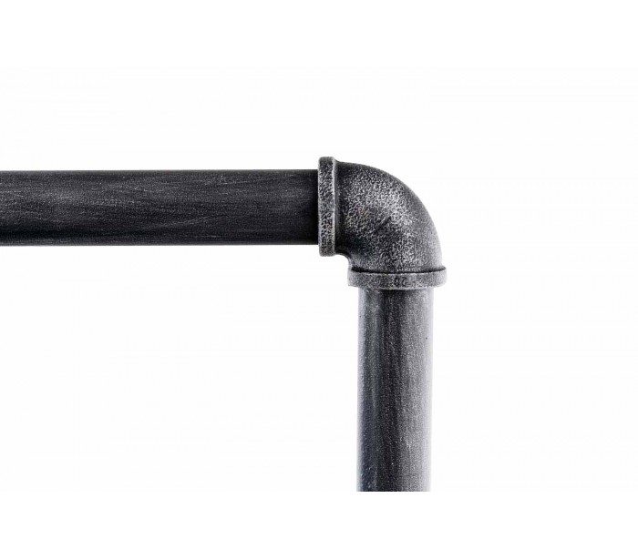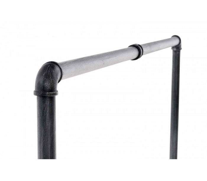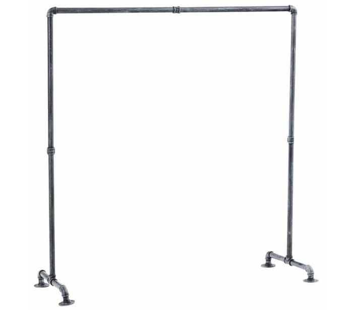 Tøjstativ udført i et industrielt design af antik sølvgrå lakeret metal. Stativet måler 150 cm i højden og 150 x 55 cm i bredde og dybde.