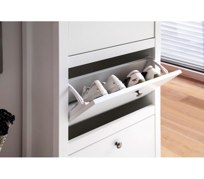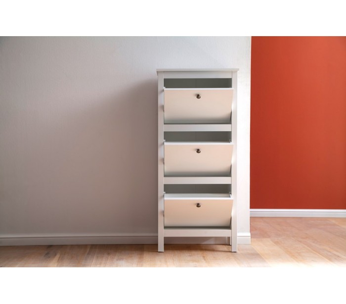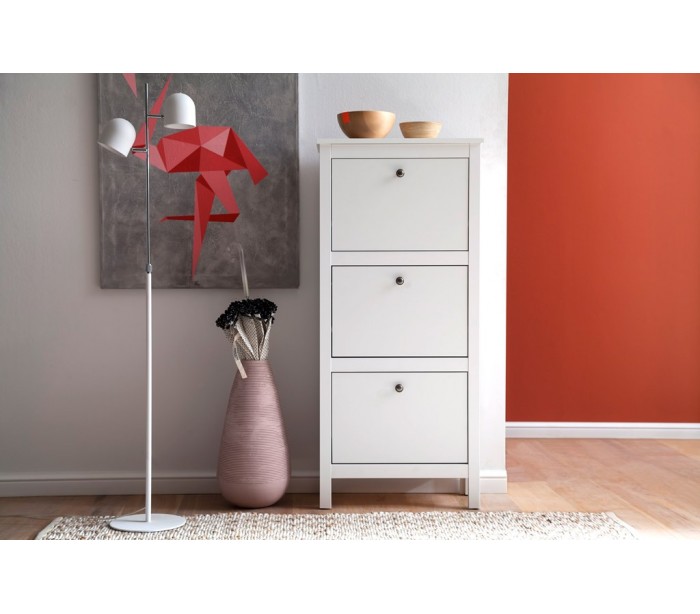Ole skoskab udført i et design af hvid møbelplade. Skoskabet måler 126 cm i højden og 55 x 29 cm i bredde og dybde.