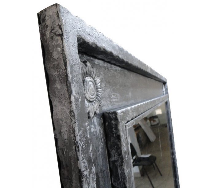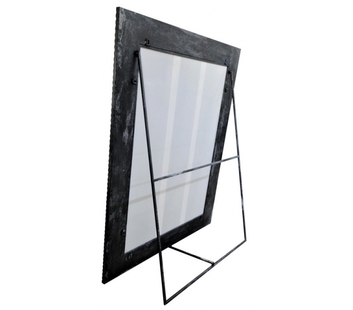 Stort gulvspejl med stativ, udført i et industrielt design i antikt sortlakeret stål. Spejlet måler 180 x 140 cm i højde og bredde.