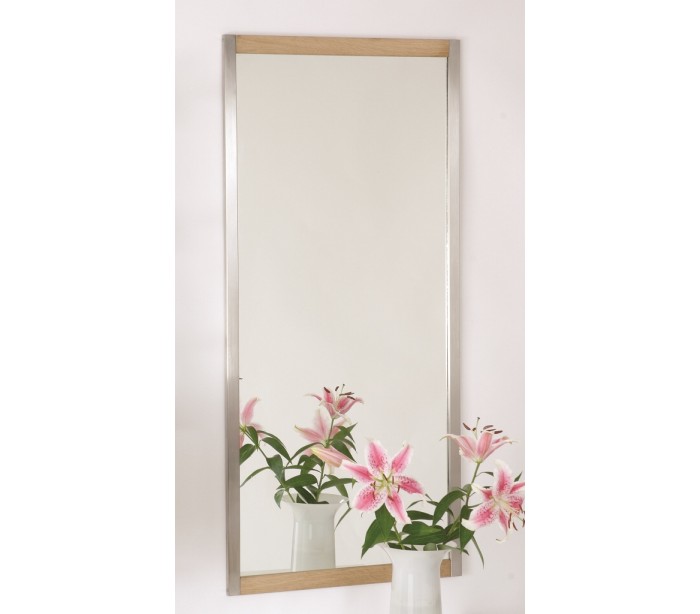Norline vægspejl 110 x 50 cm - Rustfri stål/Eg