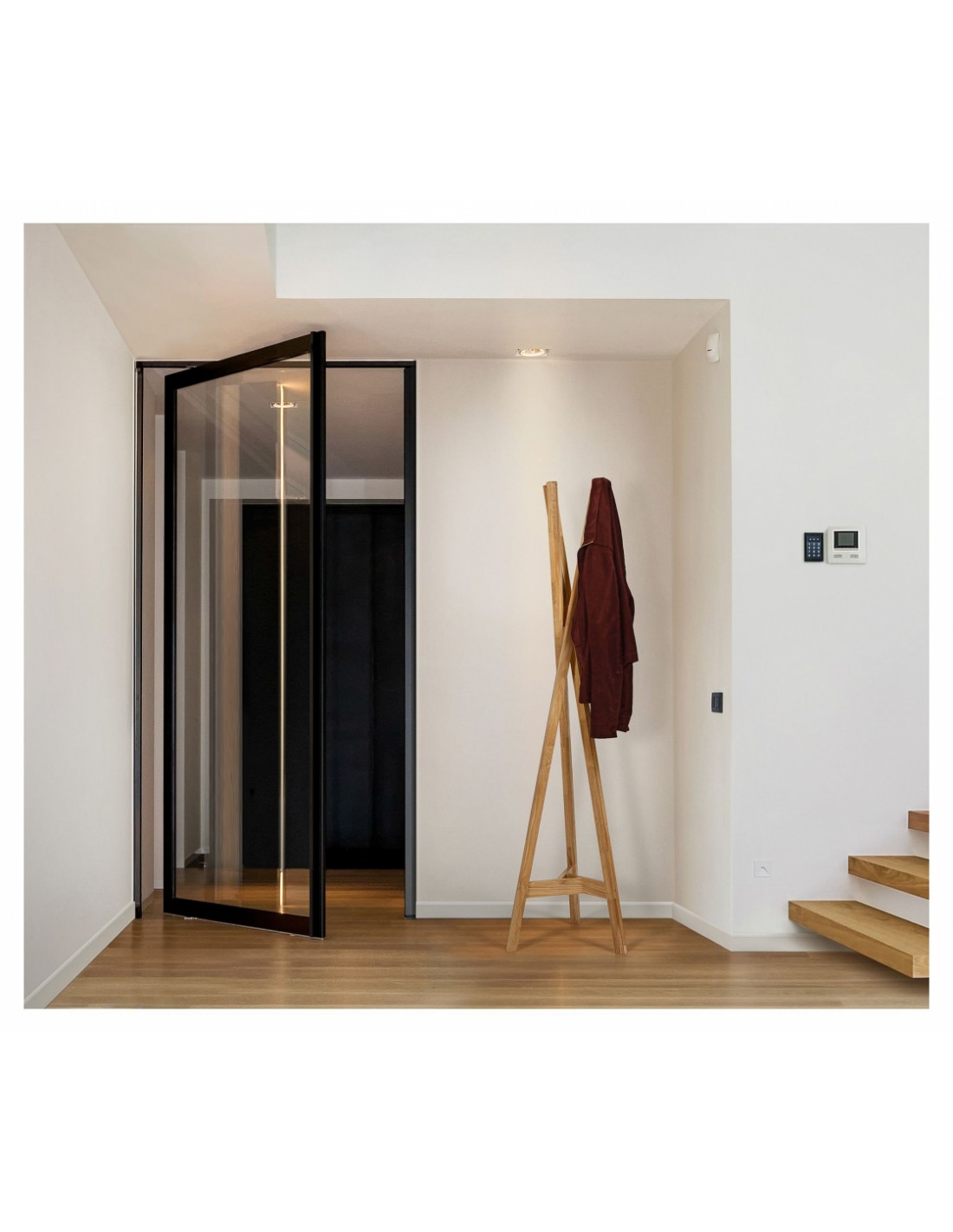 Stumtjener udført i et moderne design, fremstillet i massiv egetræ. Stumtjeneren måler 175 cm i højden og 35 x 30 cm i gulvmål.