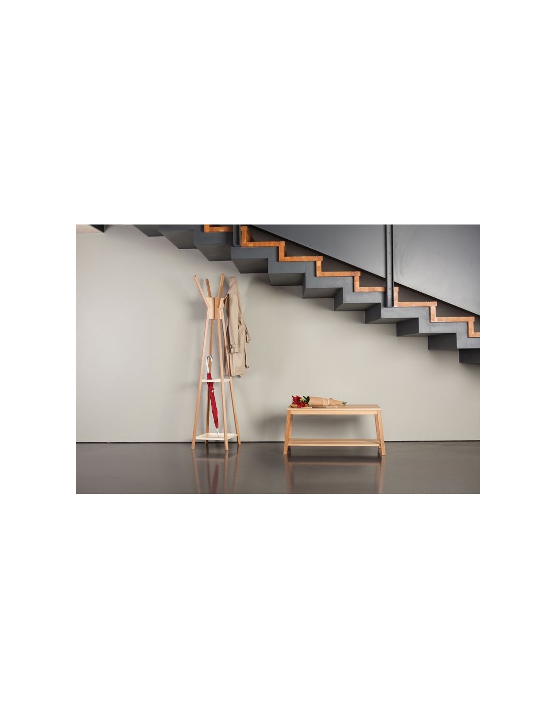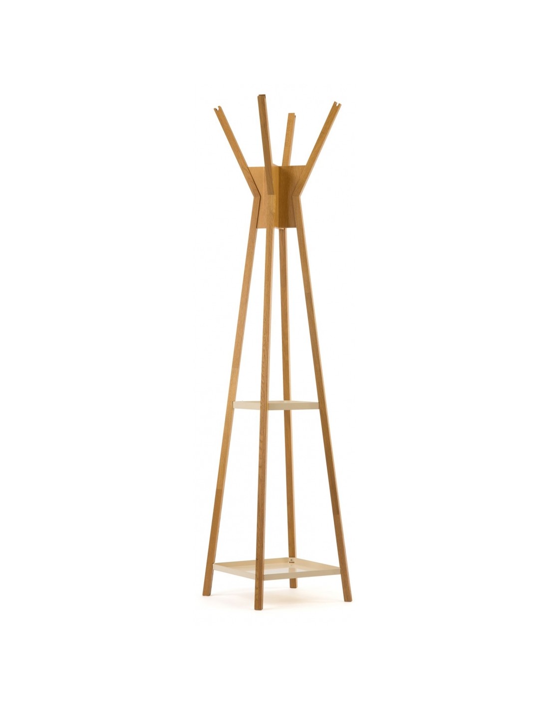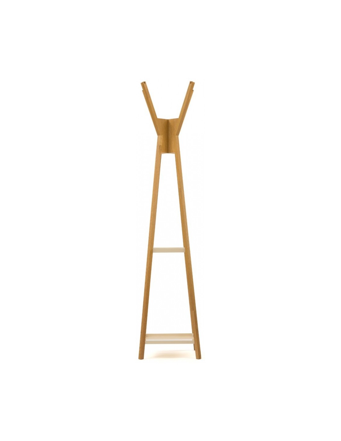 Stumtjener udført i et moderne design, fremstillet i massiv egetræ og hvidlakeret metal. Stumtjeneren måler 180 cm i højden og 41 x 41 cm i gulvmål.