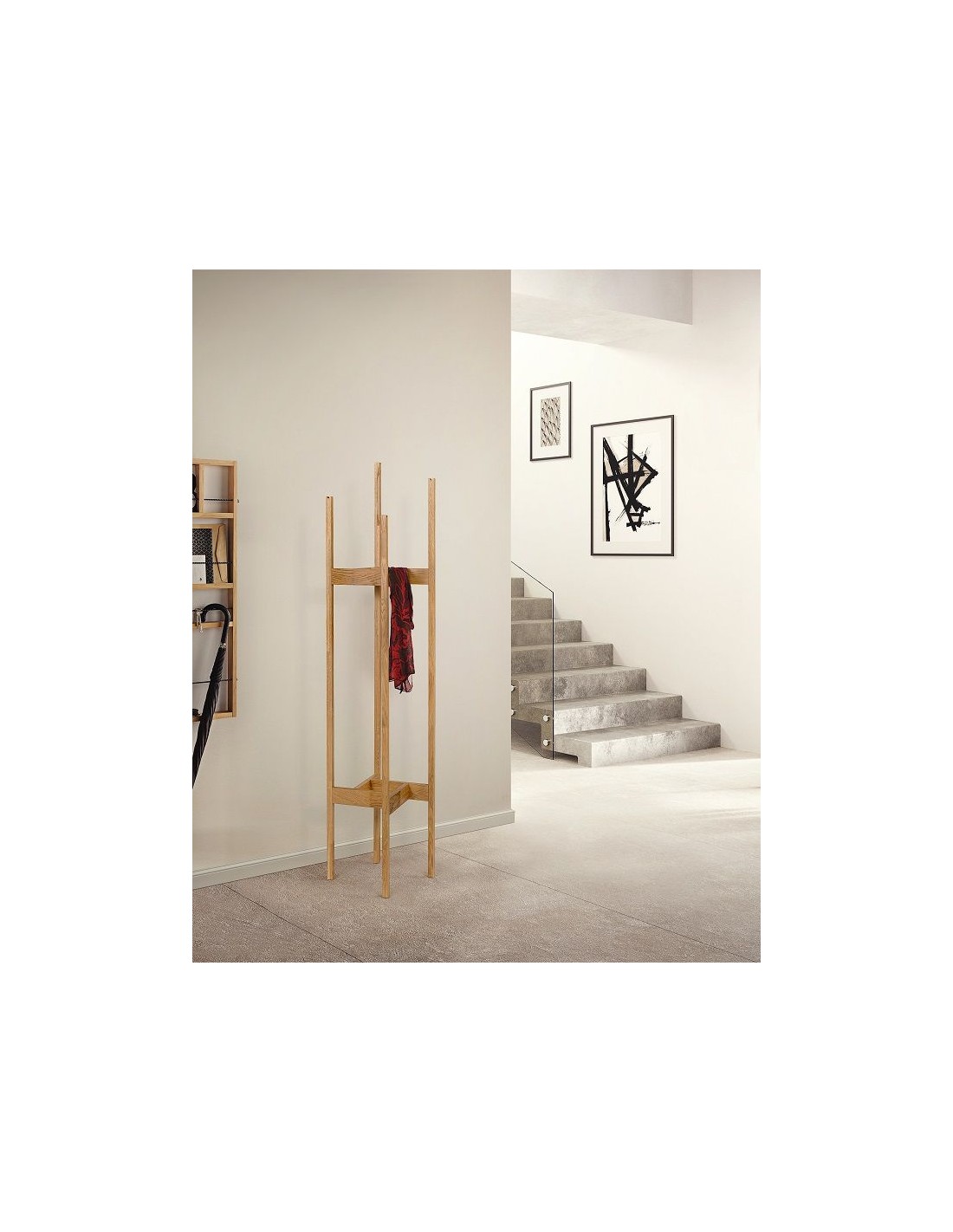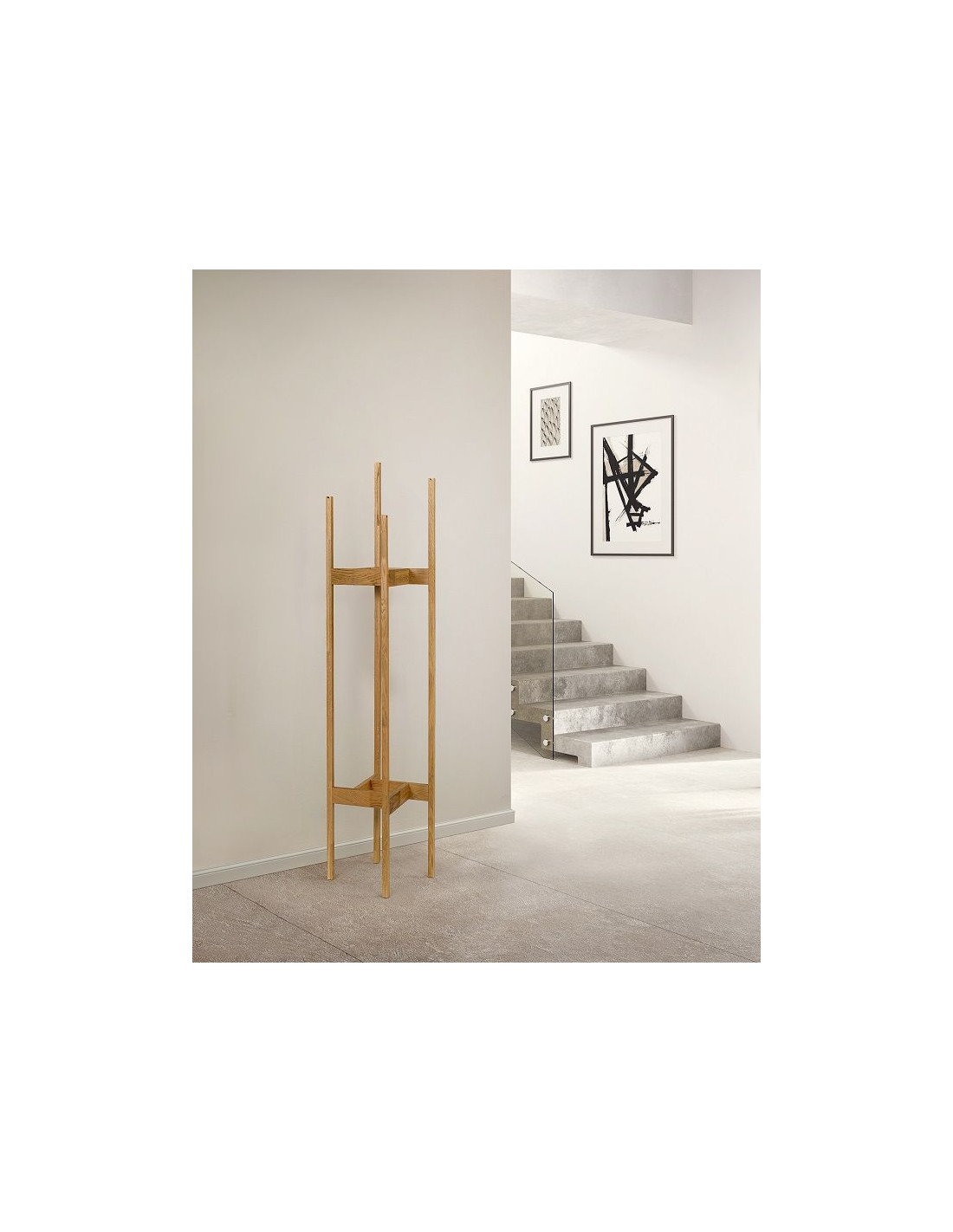 Stumtjener udført i et moderne design, fremstillet i massiv egetræ. Stumtjeneren måler 165 cm i højden og 43 x 43 cm i gulvmål.