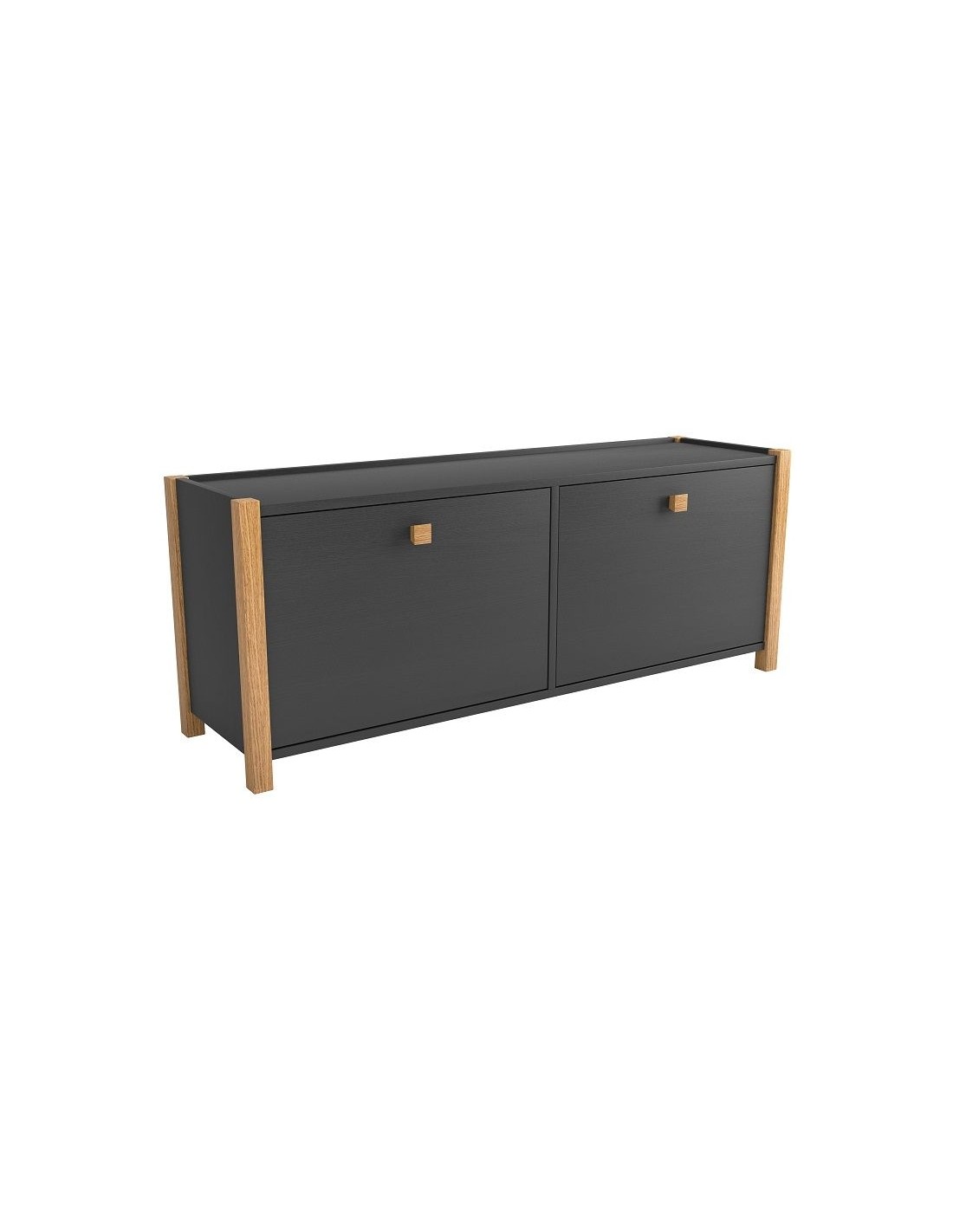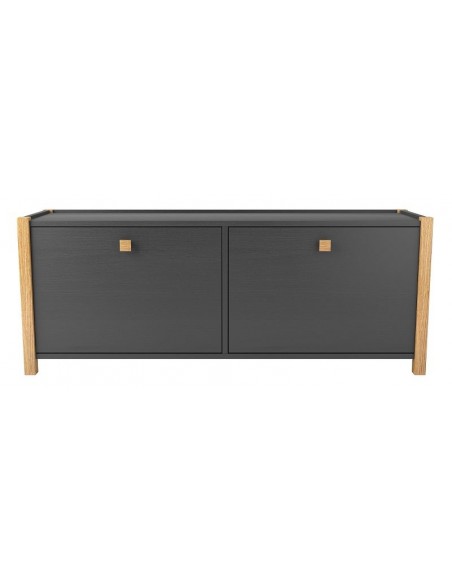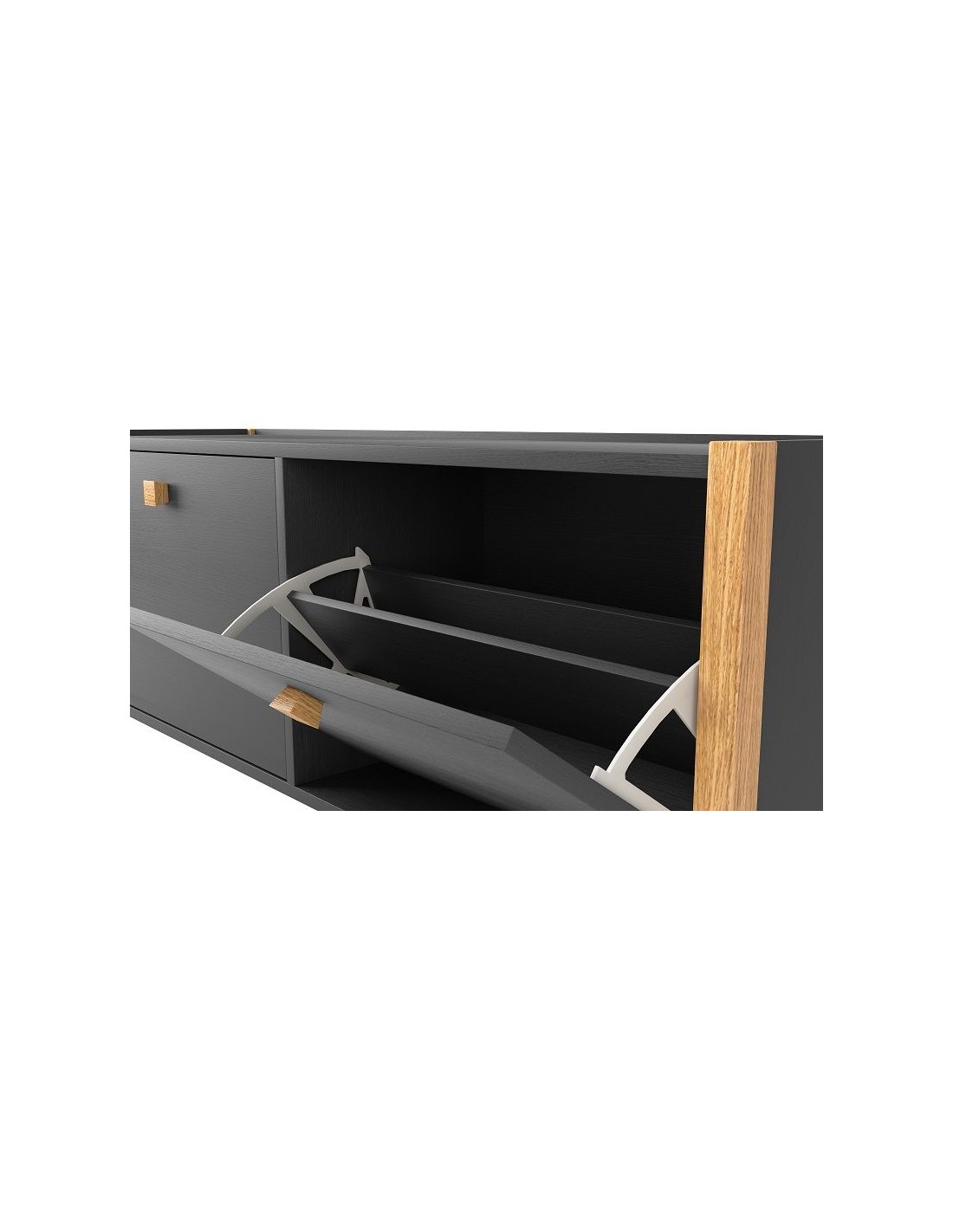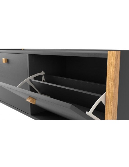 Skoskab udført i et moderne design, fremstillet i massiv birketræ og mørkegrå finér. Skoskabet måler 125 cm i bredden og 44 x 35 cm i højde og dybde. Tåler op til 90 kg vægt på toppladen.
