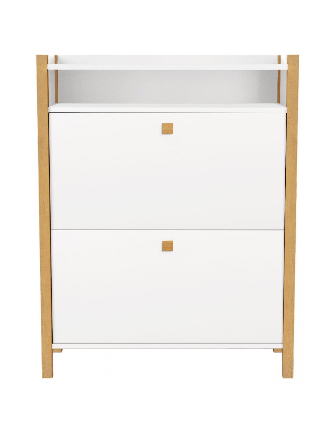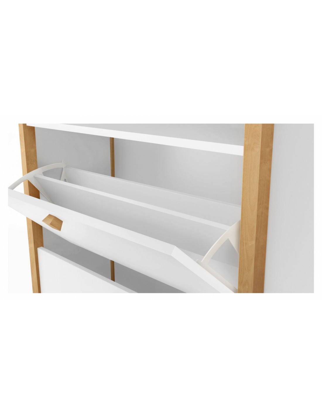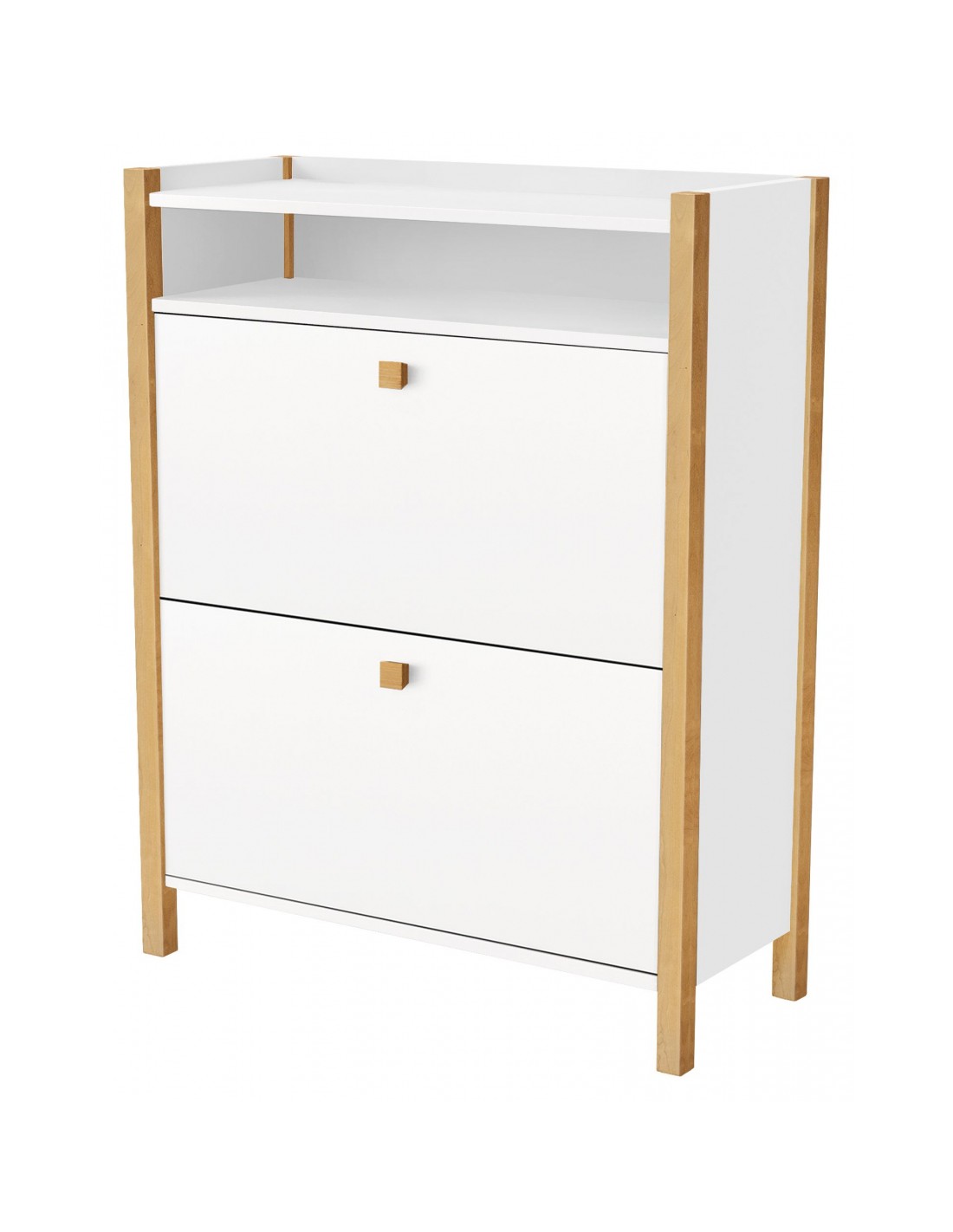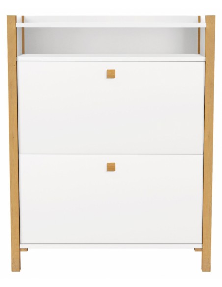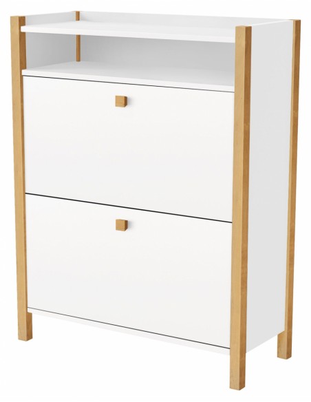 Skoskab udført i et moderne design, fremstillet i massiv birketræ og hvid finér. Skoskabet måler 84 cm i bredden og 107 x 26 cm i højde og dybde.
