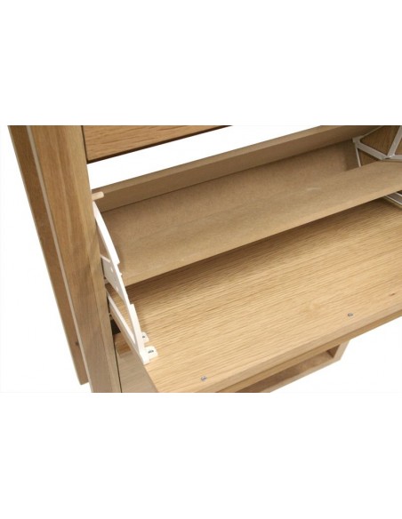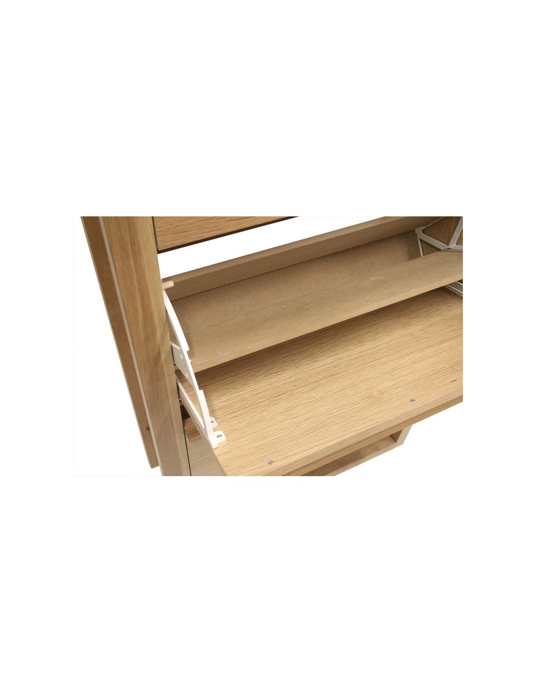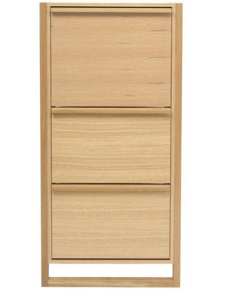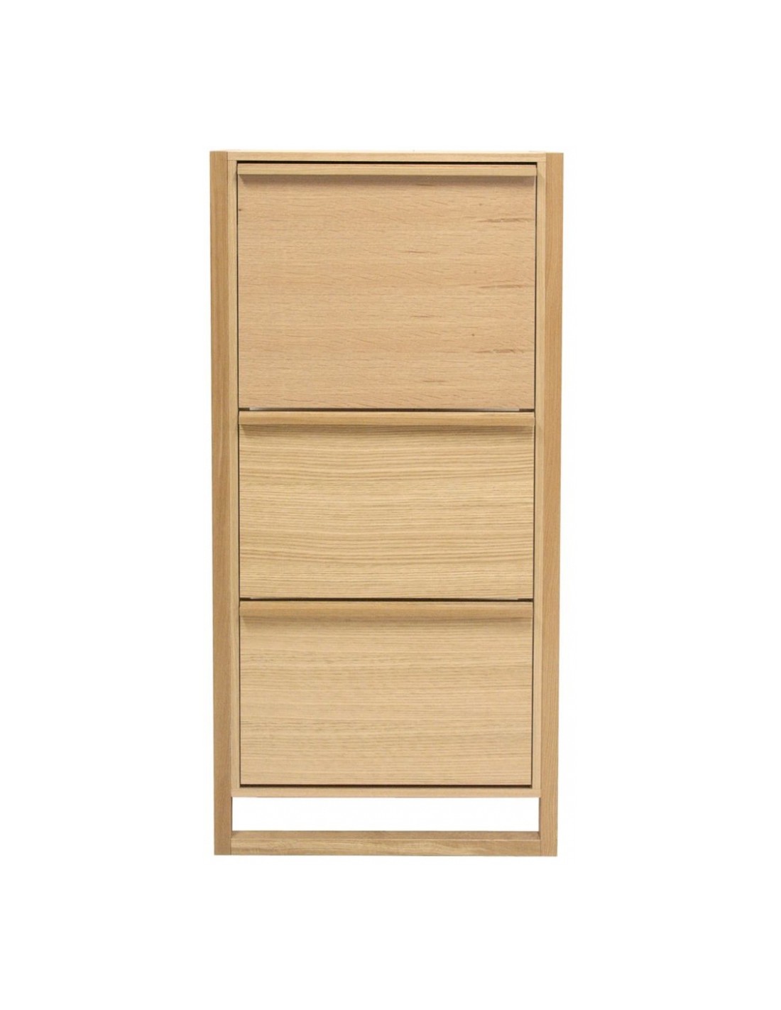 Skoskab udført i et moderne design, fremstillet i massiv egetræ og egetræsfinér. Skoskabet måler 67 cm i bredden og 138 x 28 cm i højde og dybde.