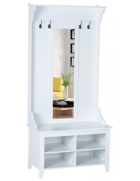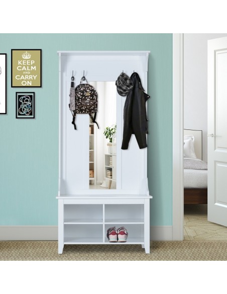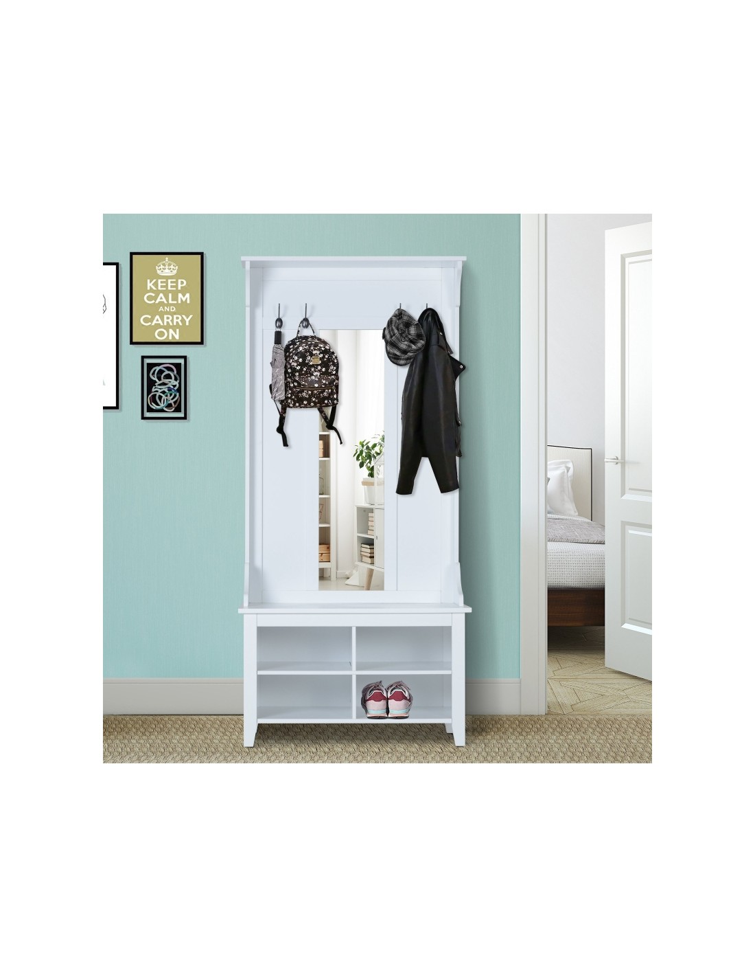 Garderobe med bænk og opbevaring i møbelplade og MDF H170 cm - Hvid