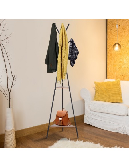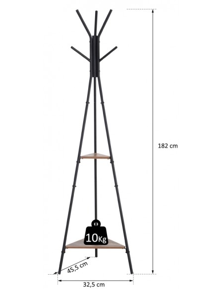 Stumtjener i metal og MDF H182 cm - Mat sort/Vintage brun