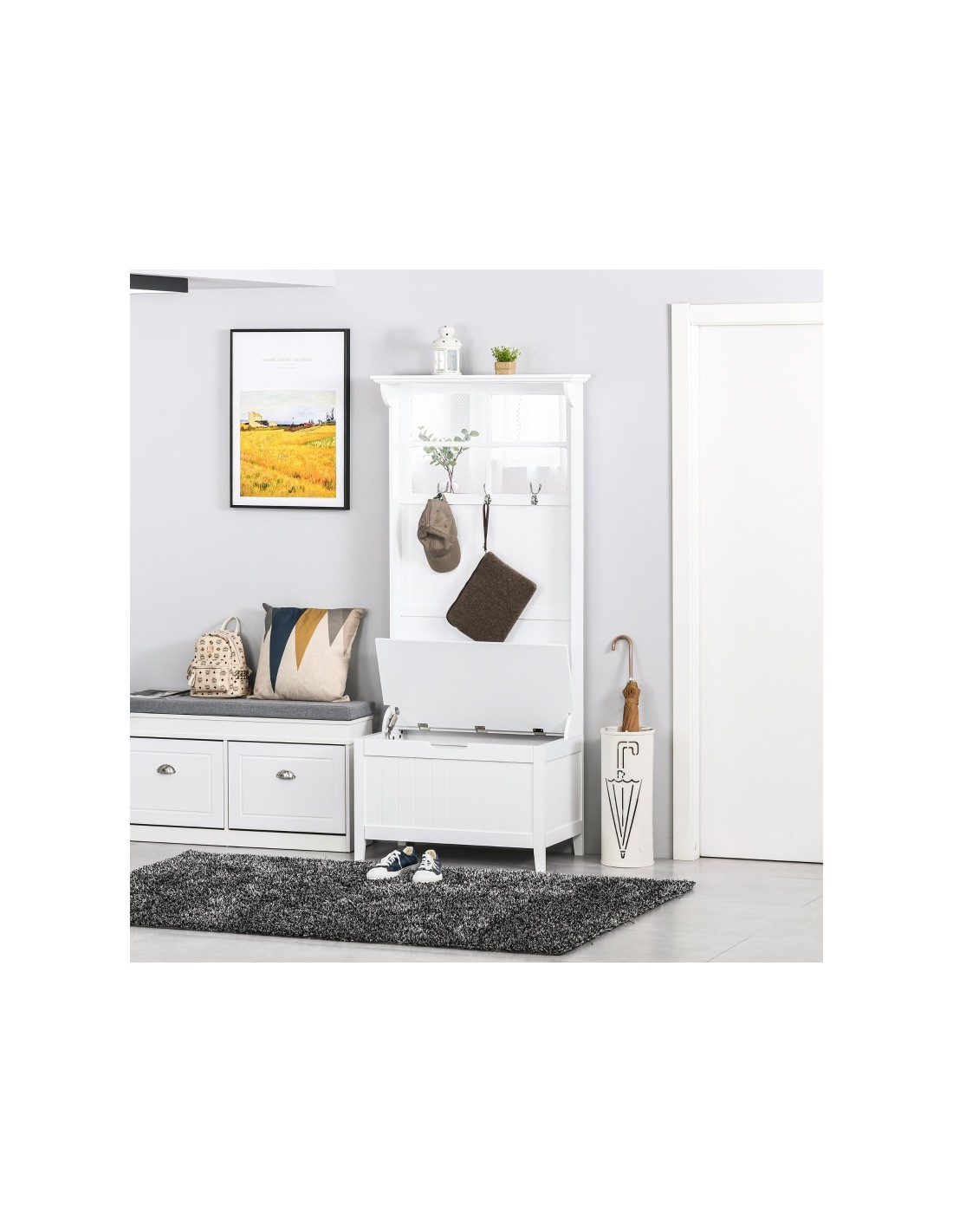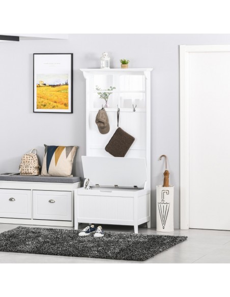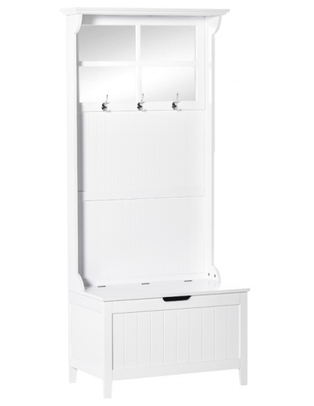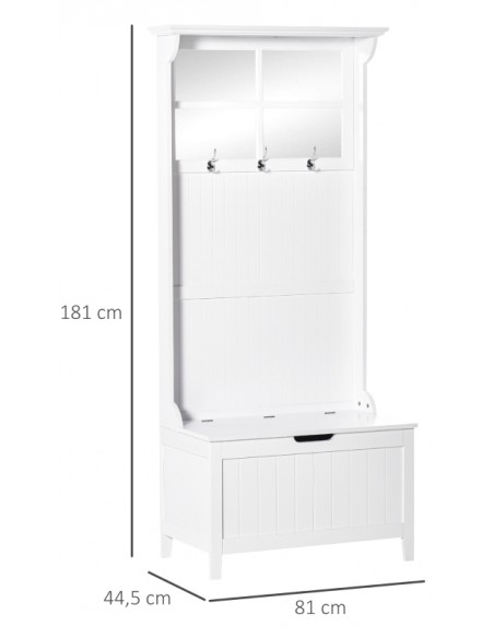 Garderobe med bænk og opbevaring i møbelplade og MDF H181 cm - Hvid