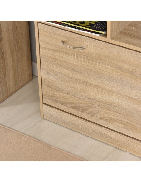 Garderobe med bænk og opbevaring i møbelplade B84 cm - Lys natur