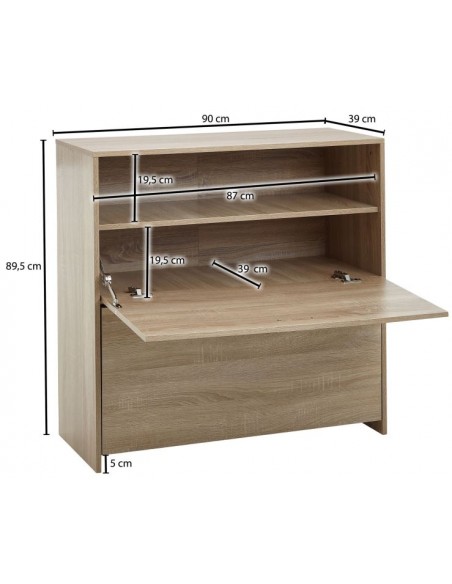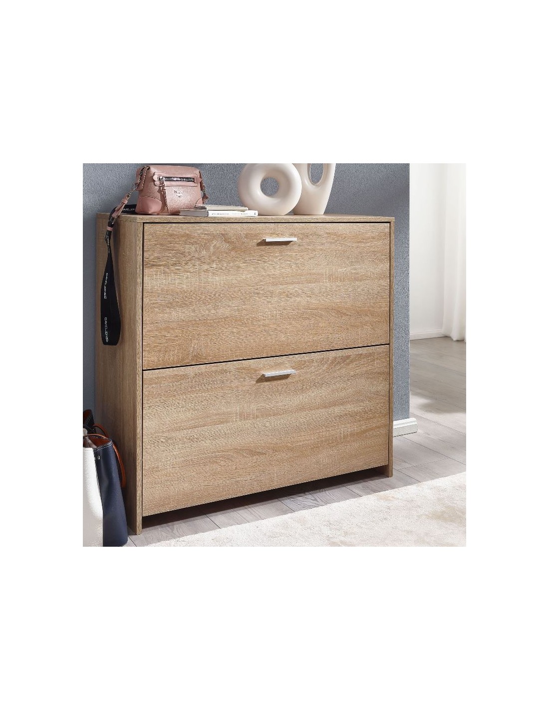 Skoskab fremstillet i et design af sonoma egetræsfarvet møbelplade. Skoskabet måler 89,5 cm i højden og 90 x 39 cm i bredde og dybde.