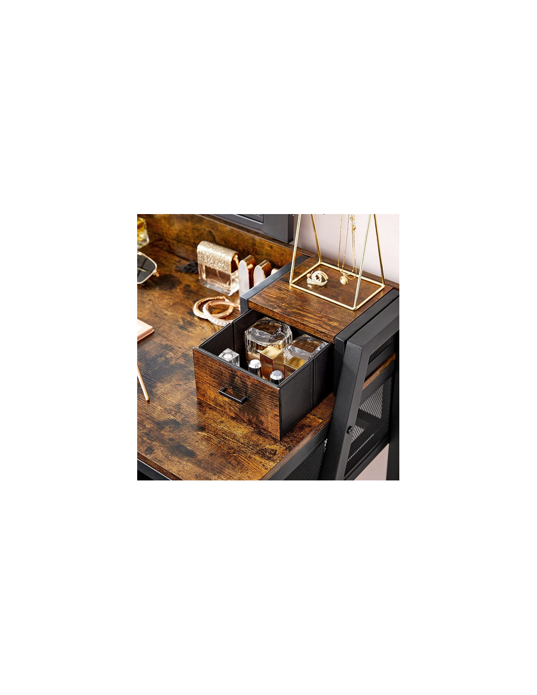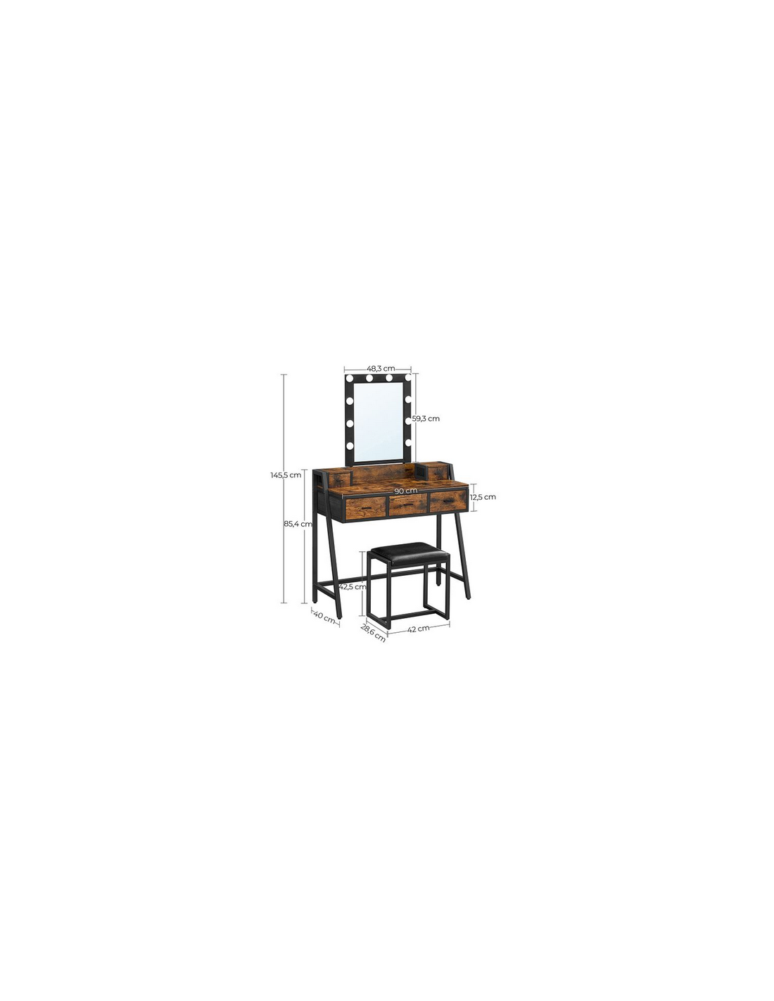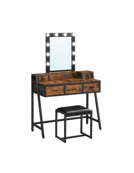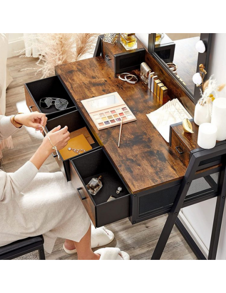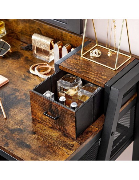 Sminkebord med spejl i metal og møbelplade H145,5 x B90 cm - Sort/Brun