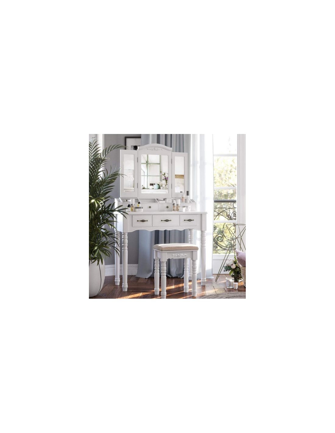Sminkebord med spejl i mdf og træ H148 x B90 cm - Hvid