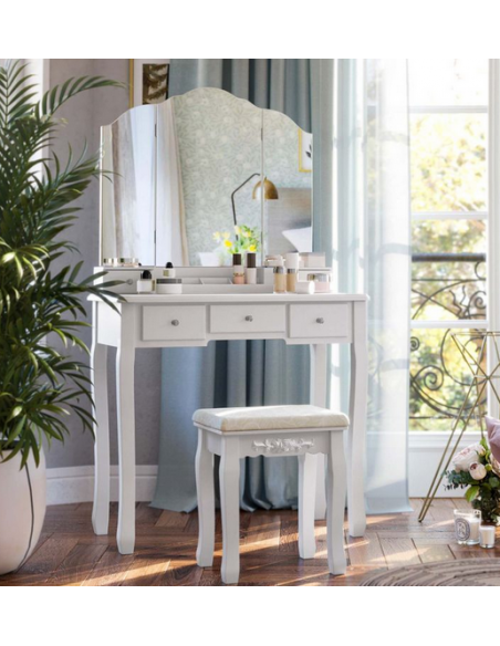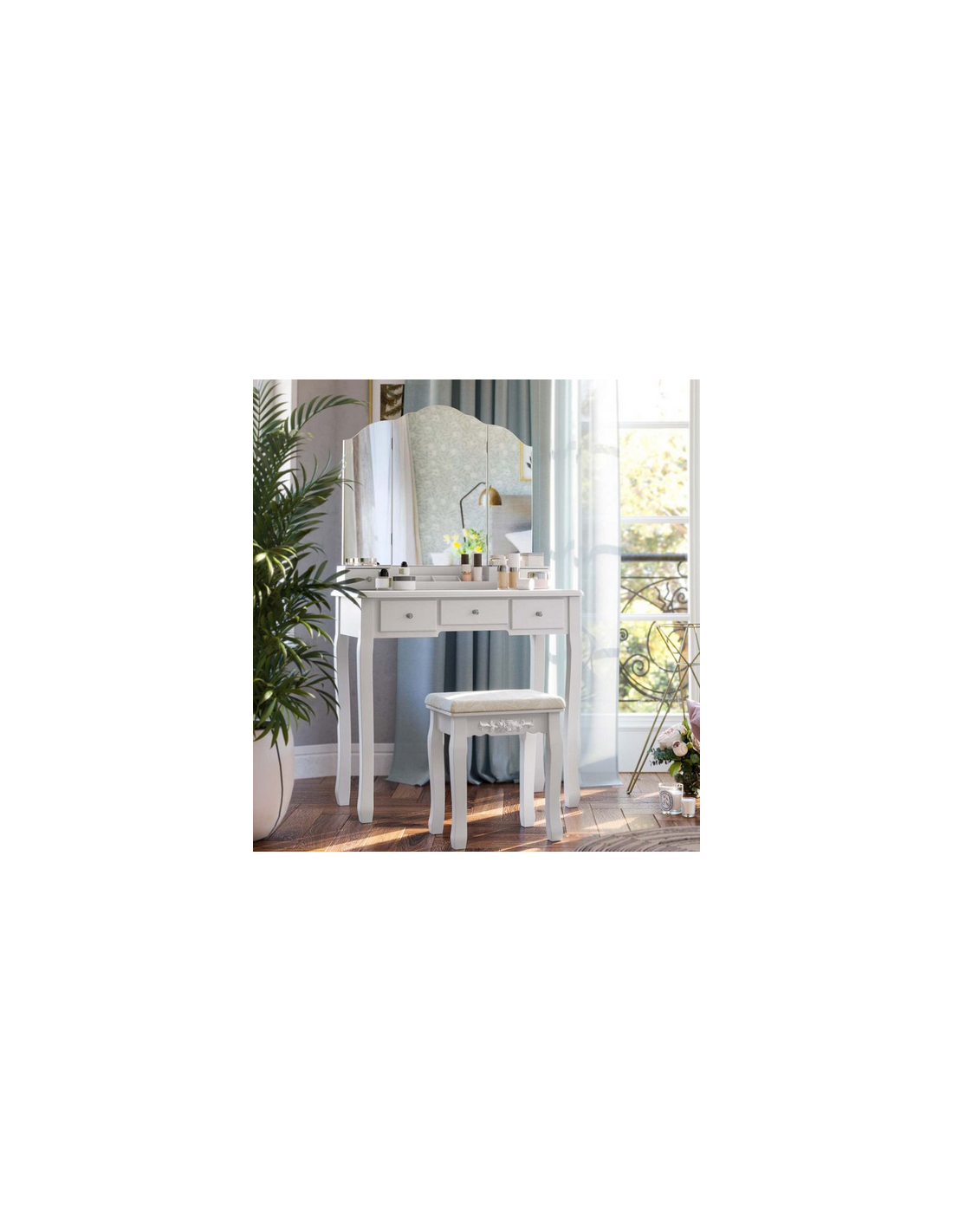 Sminkebord med spejl i mdf og træ H137,5 x B80 cm - Hvid