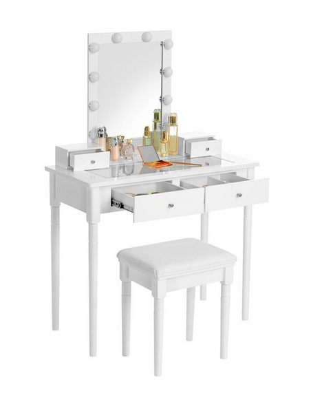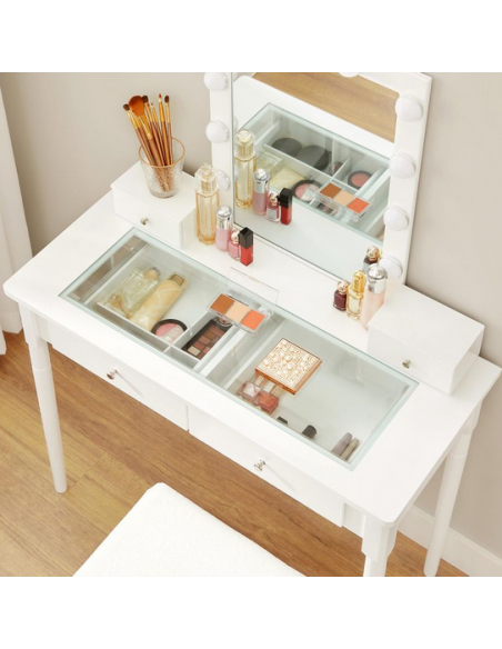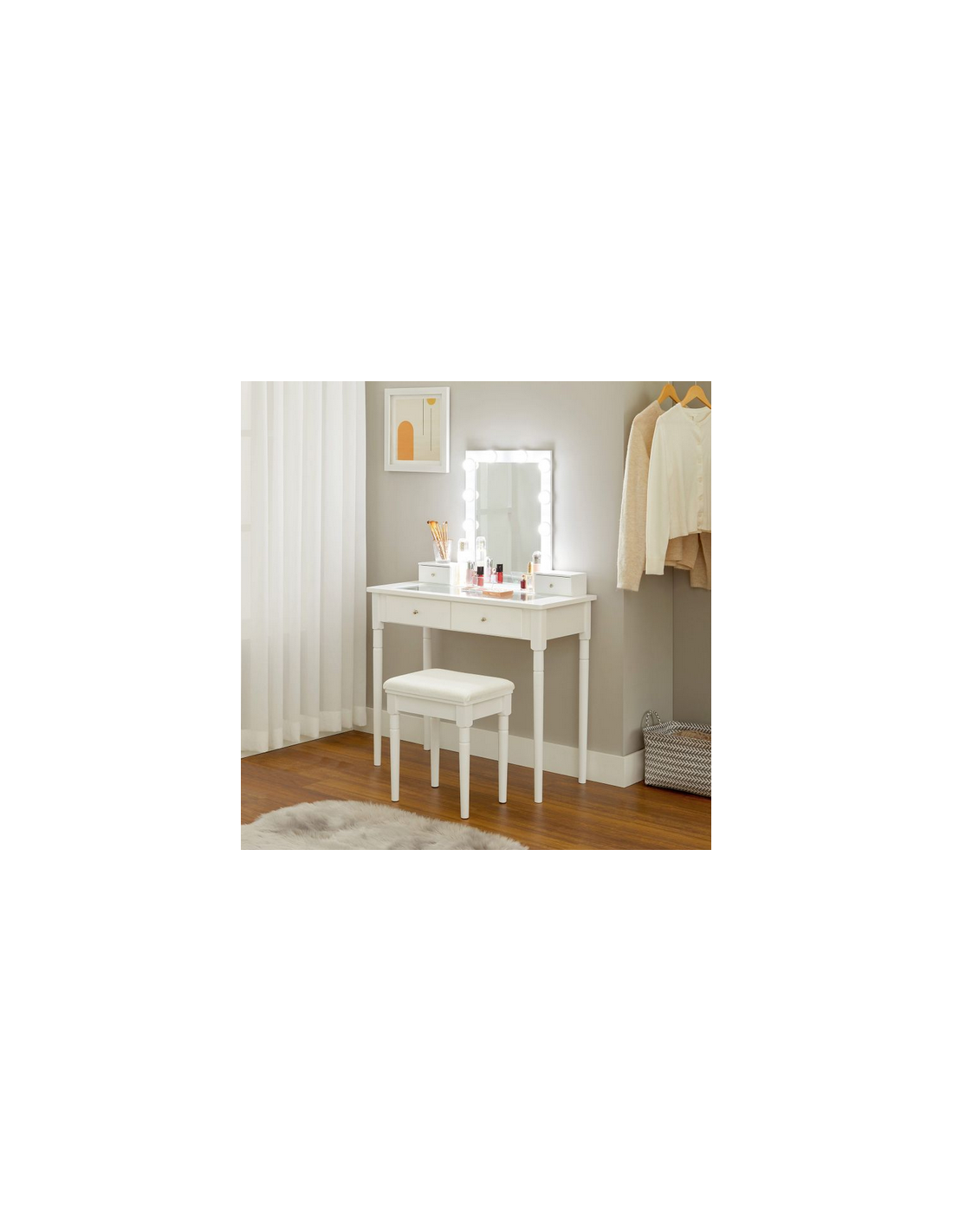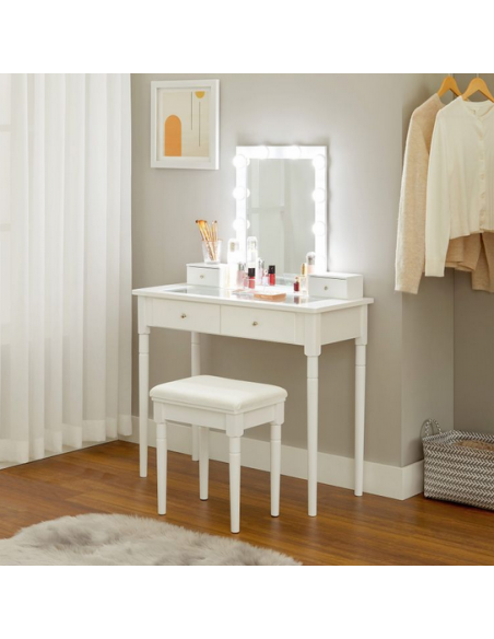 Sminkebord med spejl i mdf og træ H133,5 x B90 cm - Hvid