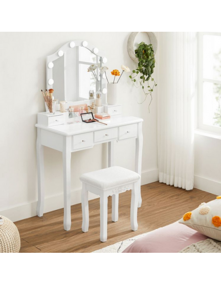 Sminkebord med spejl i mdf og træ H139 x B63 cm - Hvid