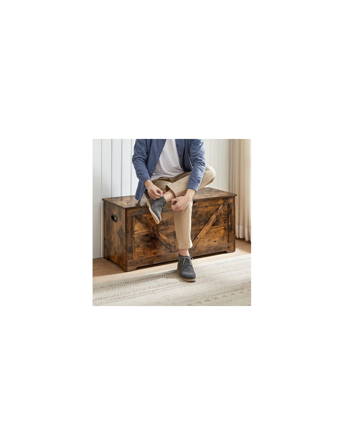 Bænk med opbevaring i møbelplade 100 x B40 cm - Brun