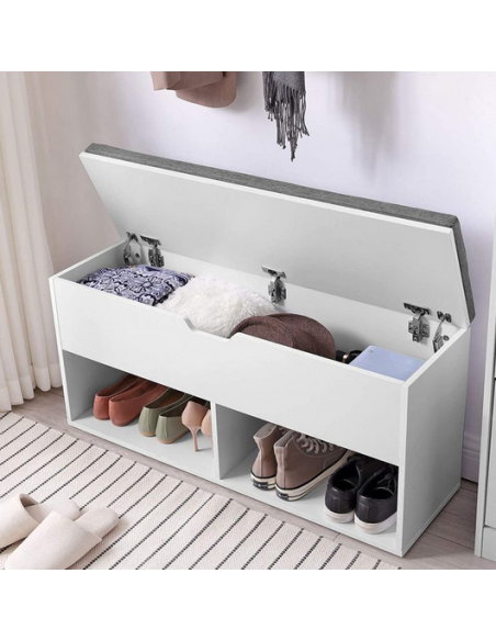 Skoreol med bænk i møbelplade og polyester 100 x B30 cm - Hvid/Grå