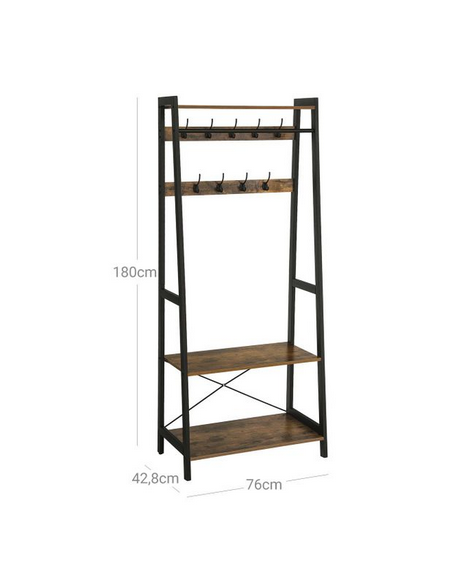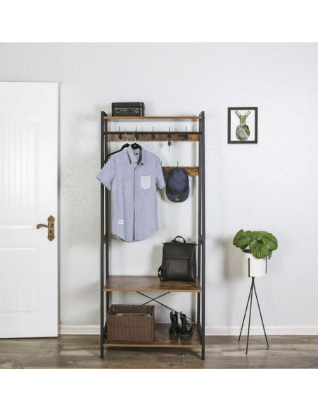 Garderobe i metal og møbelplade H180 x B76 cm - Sort/Brun