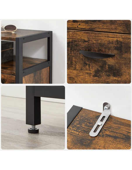 Skoskab i metal og møbelplade H130 x B80 cm - Sort/Brun