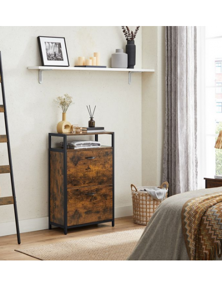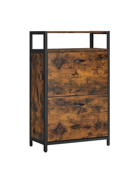 Skoskab i metal og møbelplade H95 x B60 cm - Sort/Brun