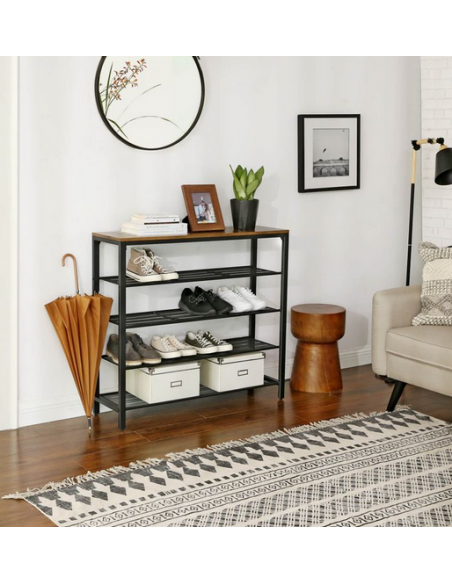 Skoreol i metal og møbelplade H92,5 x B100 cm - Sort/Brun