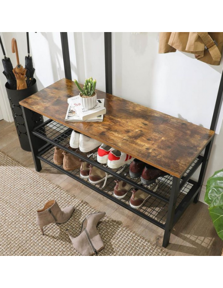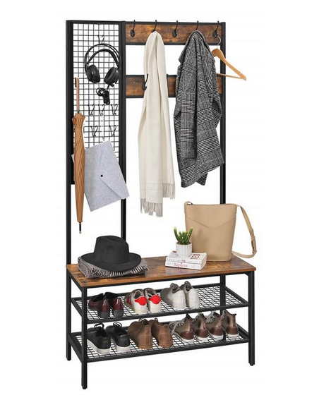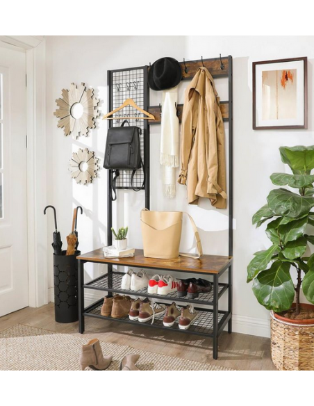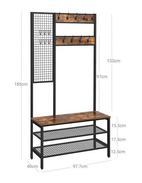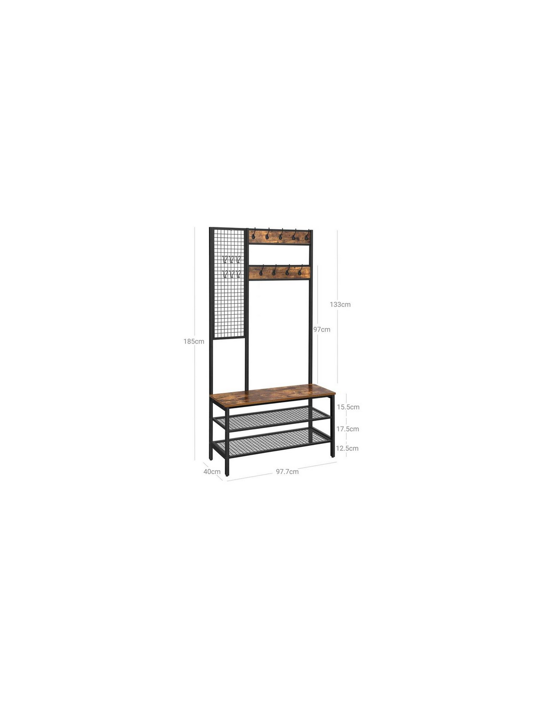 Garderobe i metal og møbelplade H185 x B97,7 cm - Sort/Brun