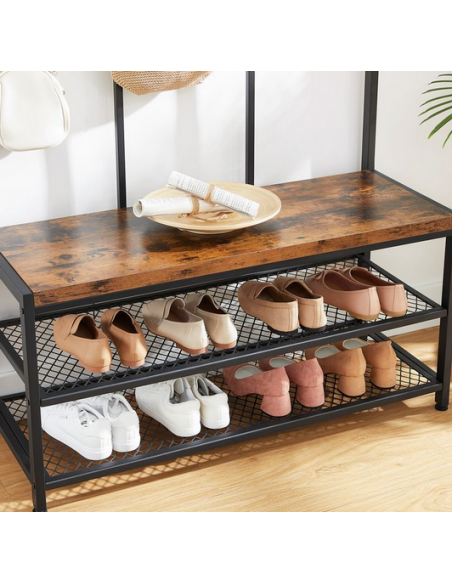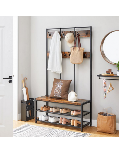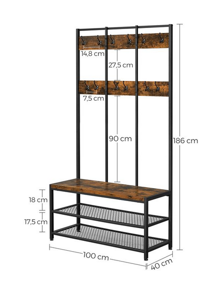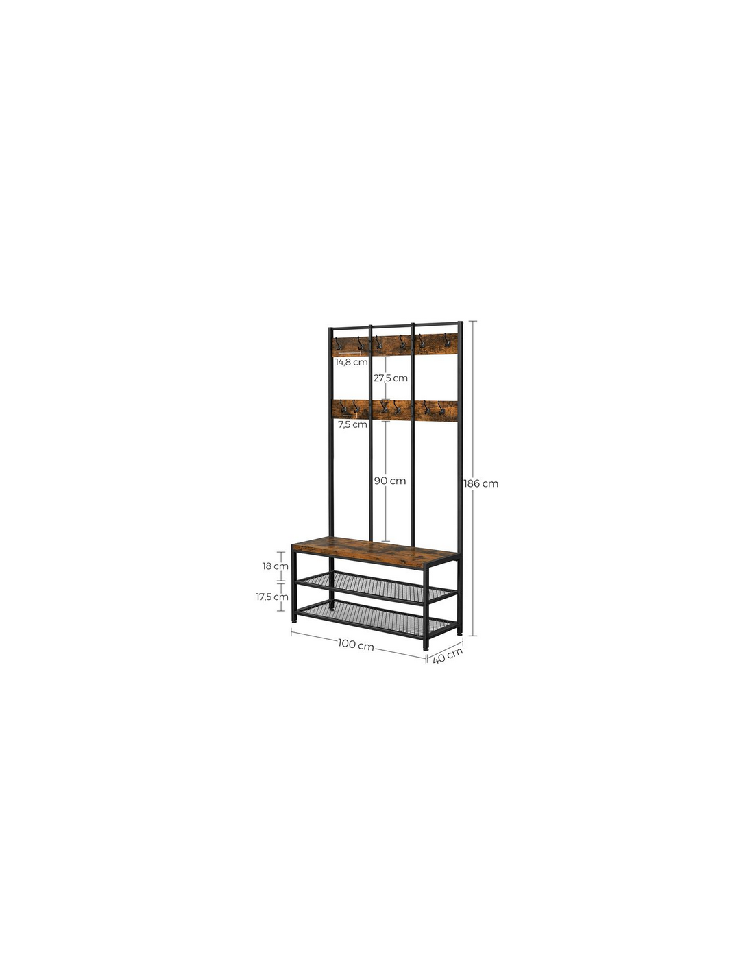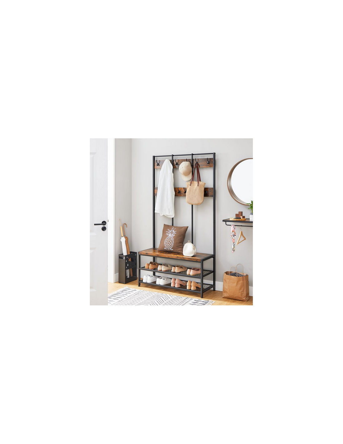Garderobe i metal og møbelplade H186 x B100 cm - Sort/Brun
