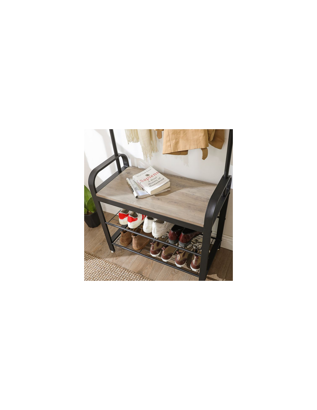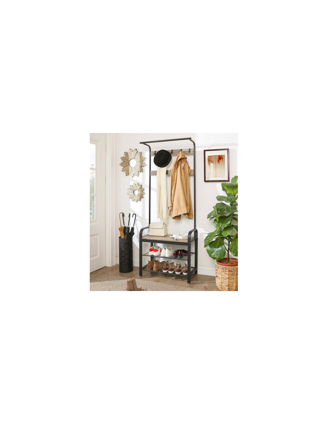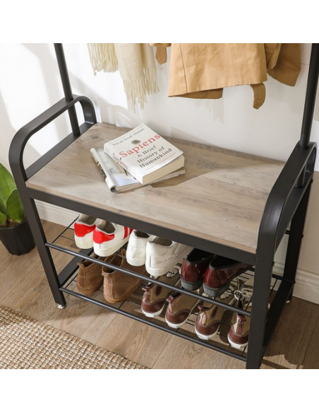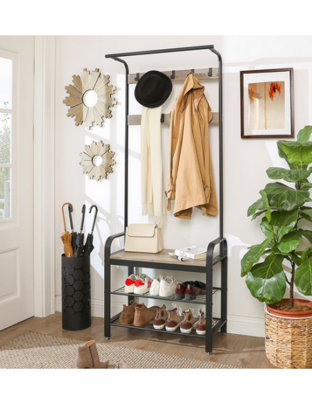 Garderobe i metal og møbelplade H183 x B72 cm - Sort/Grå